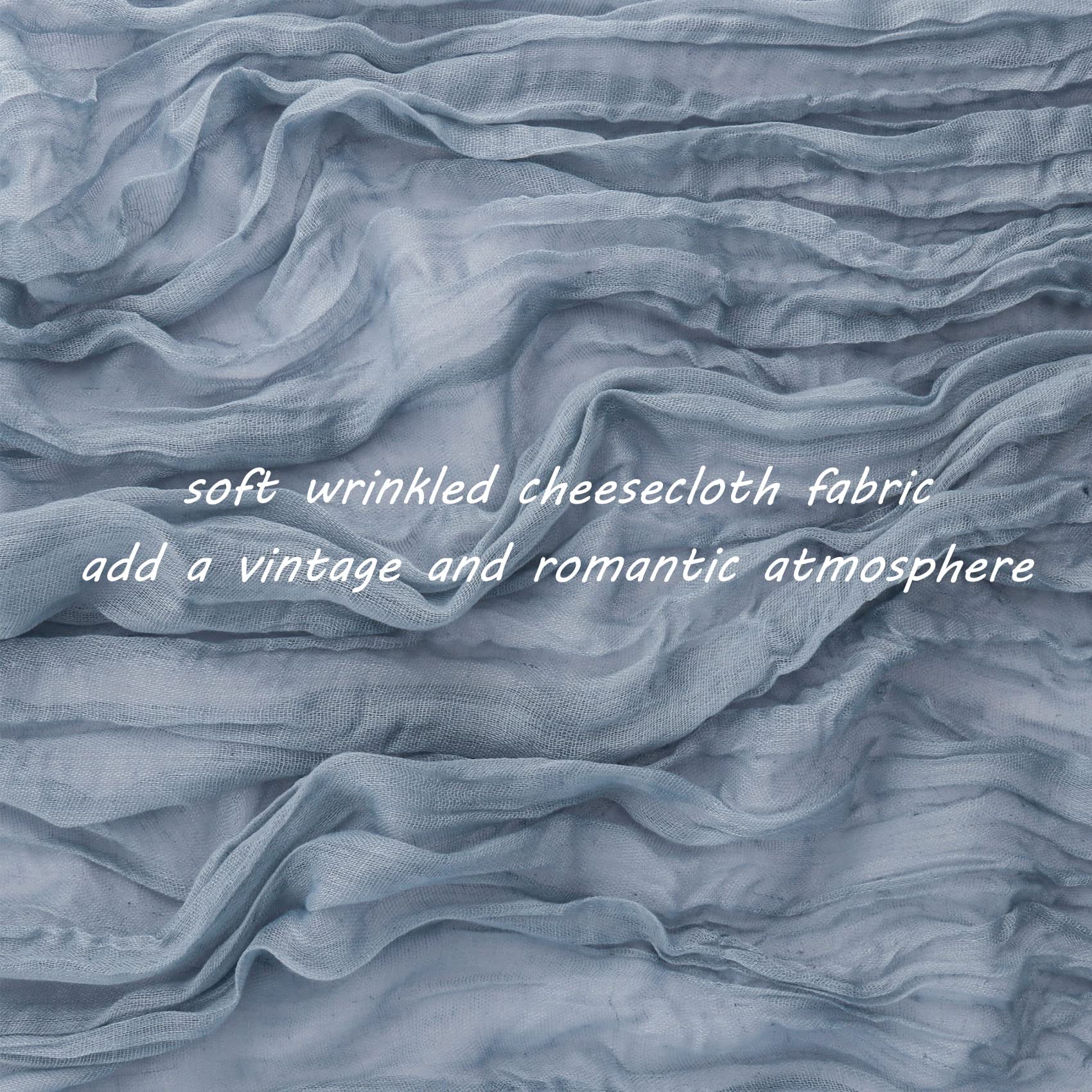 - Package Include: you will get 12 pieces 10ft length dusty blue cheesecloth table runner, enough quantity is suitable for wedding banquets and various parties, the size of each table runner is approximately 35 x 120 inches / 90 x 300 cm, which is large enough to cover rectangle and round tables, can also be spliced together for long tables. Even can be used for chair cover sashes or decorative napkins, backdrop draping or even gift wrapping.