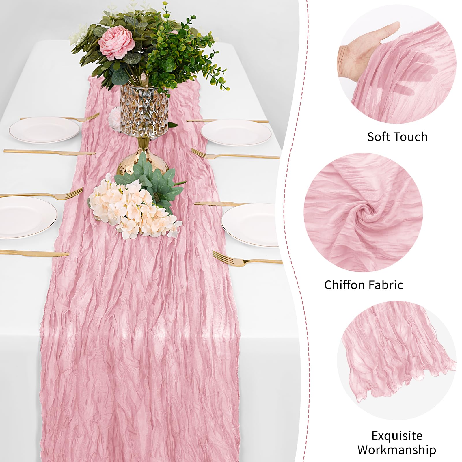 - Package Included: You will receive 12 pieces of 17 x 108 inch pink cheesecloth table runner with elegant and beautiful design, enough quantity to meet daily use and replacement needs, and size to fit most rectangular and round tables. Cheesecloth table runner will make your dining table more elegant and gorgeous