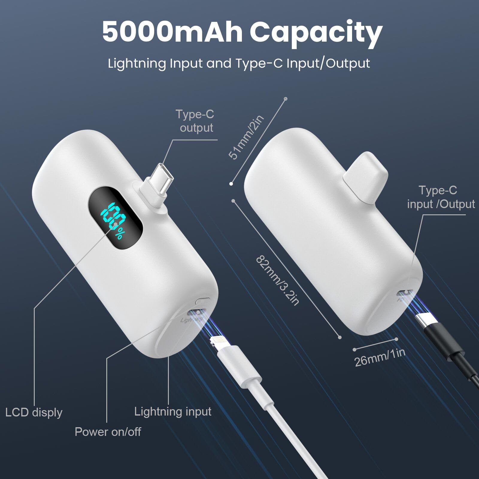 [2-Pack] Mini Portable Charger 5000mAh Power Bank,3A PD USB C Cell Phone Portable Power, LCD Display Battery Pack Compatible with iPhone 16/15/15 plus/15 pro/15 pro Max/Android/Samsung/Moto/LG etc