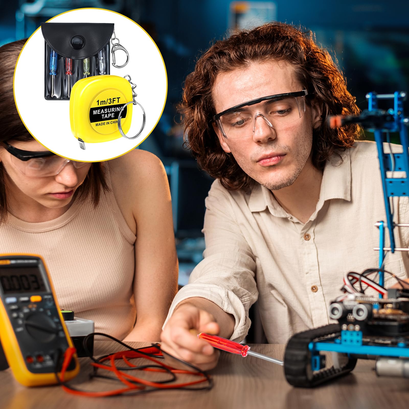 - 【Complete Set】This set includes 12 mini tape measures and 12 mini screwdriver keychains, each with a portable pouch. The screwdrivers come in three styles: Y-shaped, cross, and slotted, providing a versatile tool kit for various needs.