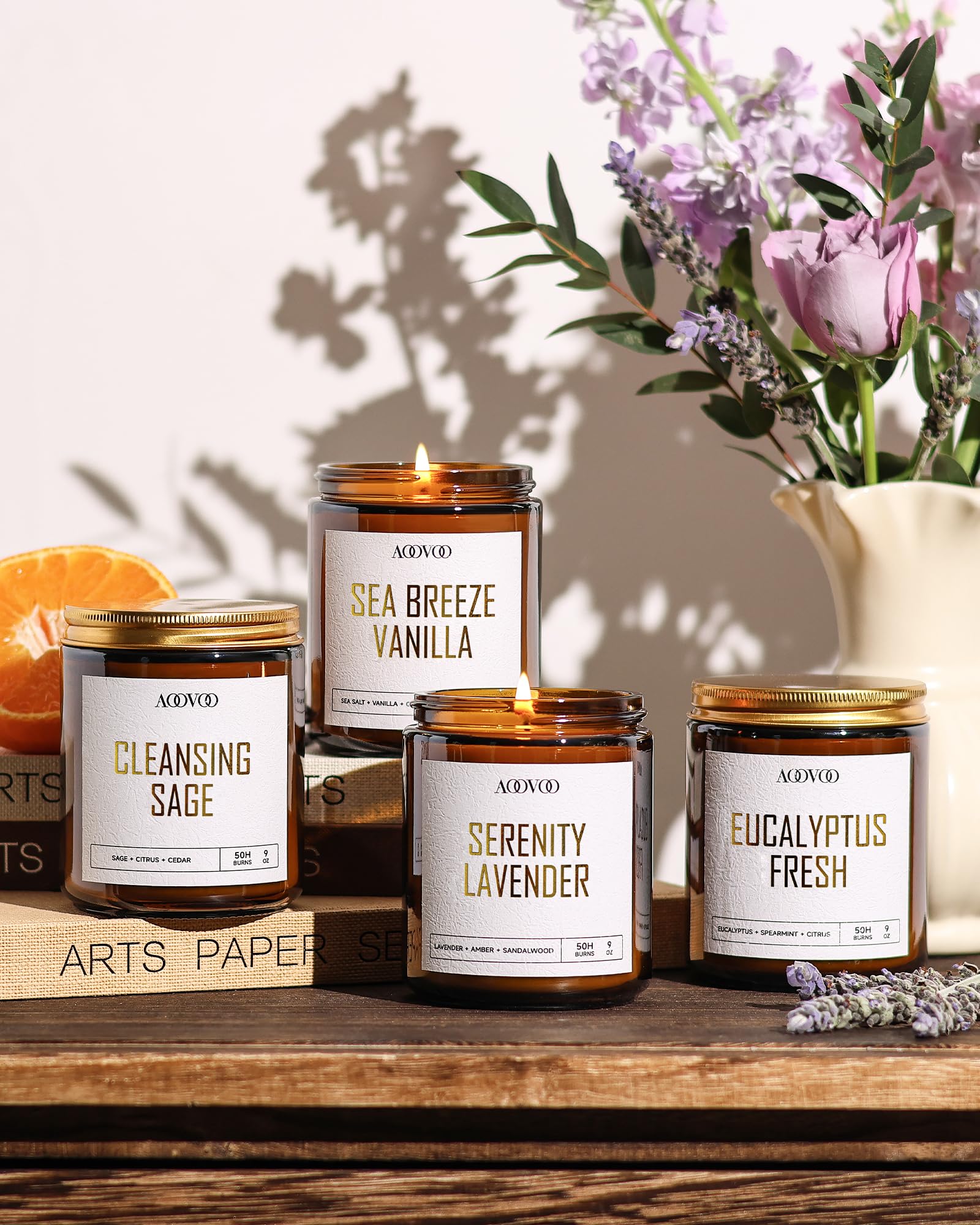 AOOVOO Scented Candles - 4PC Candle Set, 36 oz Soy Candles, Soy Candle for Home Scented, Lavender/Vanilla/Eucalyptus/Sage