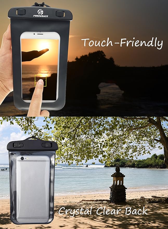 - ✔ PROTECT YOUR CELL PHONE AND MAKE THE MOST OF YOUR WATER SPORT ACTIVITIES: This set also includes a must have IPX8 Certified Waterproof Phone Case (3.9' x 6.7'). This amazing dry cell phone case features a very simple snap and lock access that has dual-sided clear windows that allow you to text, talk on the phone, take pictures and video while still inside the case. Suitable for phones up to 6.5 Inches of diagonal screen size.