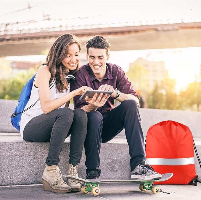 - Package included: 15* Drawstring bag with reflective strip, 10 colors: red, green, grey, black, royal blue, sky blue, orange, purple, fluorescent green, rose red