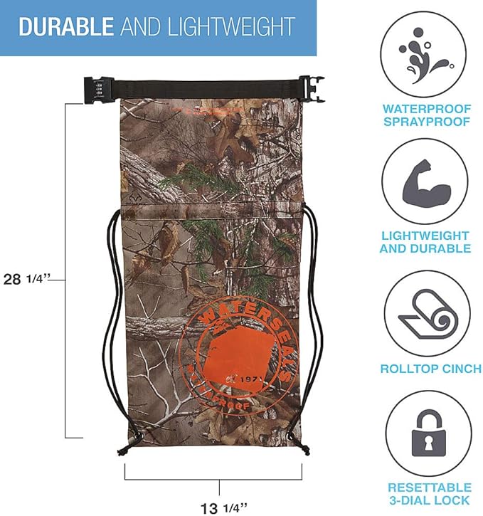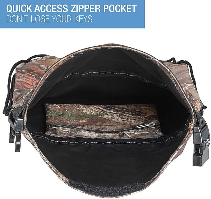 - INTUITIVE FEATURES: Our waterproof drawstring bag was created for your ease. When packing it up, simply roll the top three times, clip to close, and set the lock. Use the clip for attaching it to a chair, poll, or fence.