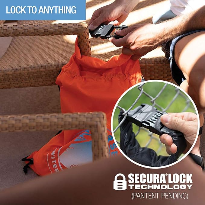 - KEEP YOUR VALUABLES SAFE: This drawstring bag is fashioned with Secura lock technology keeping your belongings safe with a 3-digit resettable combination. Protect valuables such as your phone, wallet, tablet, laptop, keys, and much more.