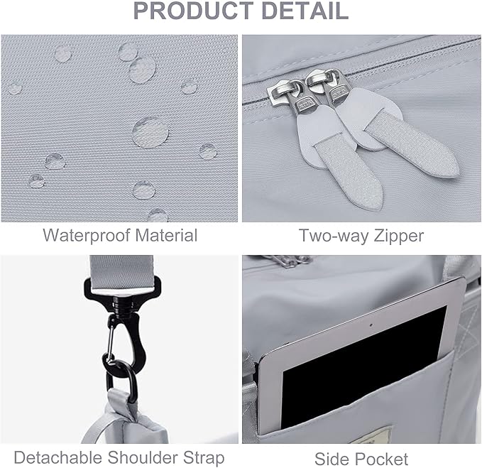 Womens travel bags, weekender carry on for women, sports Gym Bag, workout duffel bag, overnight shoulder Bag fit 15.6 inch Laptop (Large, Grey)