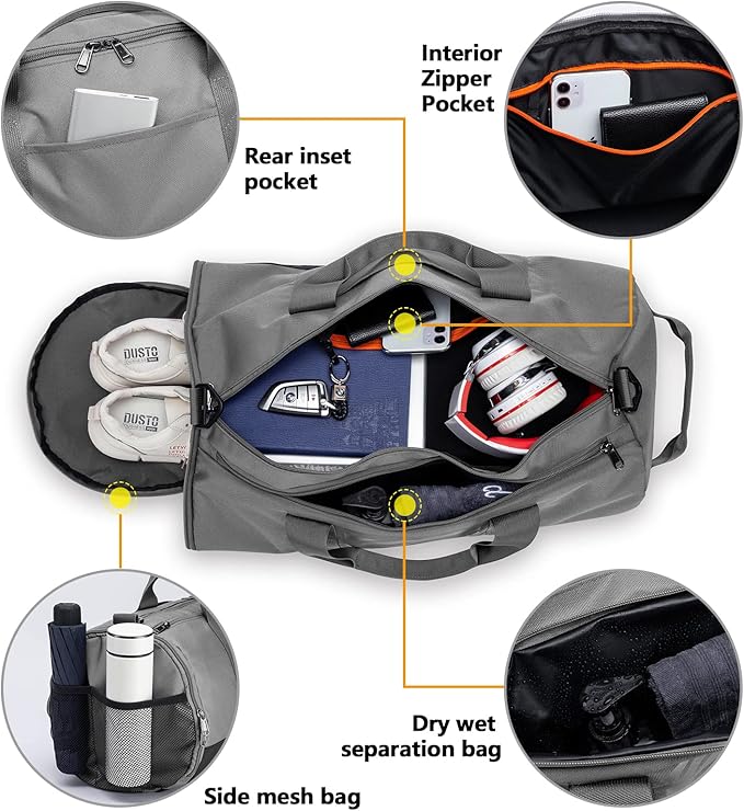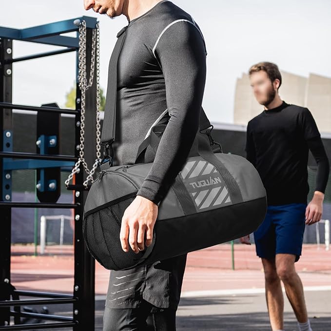 TUGUAN Basketball Gym Bags for Men Women Small Travel Duffle Bag Wet Pocket & Shoes Compartment Overnight Weekender Duffel Bag Sports Gym Tote bag Man 40L, grey
