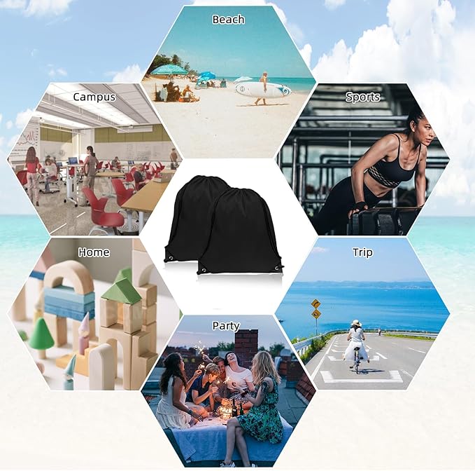 - Multipurpose for Everyday Usage: These cinch sack drawstring backpacks are suitable for various occasions, such as birthday parties, camping themed parties, pool parties, and you can also bring them with you when working, traveling, exercising, or even shopping at the supermarket. These bulk backpacks can also be used for home storage and can be shared with family and friends. These pull string bags can also be folded, making them very easy to carry.