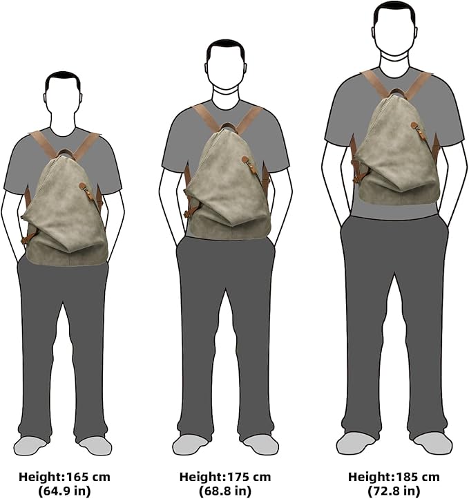 - [ROOMY] 13” L x 6.7” W X 15” H, strip length 17.7”-33.5”, this PU large casual daypack is roomy enough for your iPads, smartphone, power banks, wallet, umbrella, water bottles, etc. Prefect for men and women to go to business, travel, shopping, dating, tourism, gym, cycling, hiking, walking, camping, etc.