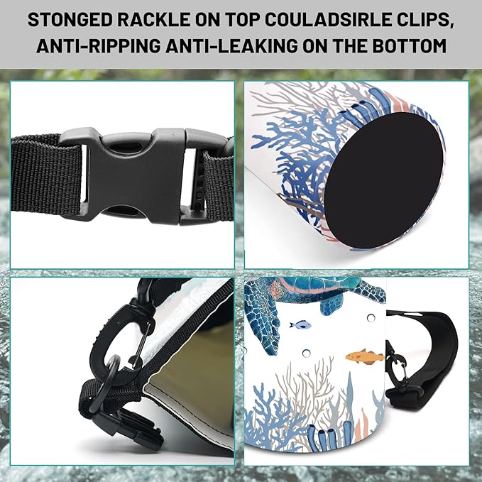 - Versatile Use for Every Adventure:Our Sea Turtle Coral Starfish waterproof backpack perfect for kayaking, camping, rafting, and hiking, our multifunctional dry bag adapts to various outdoor activities.IPX8 CERTIFIED WATERPROOF PHONE CASE: Included with your dry bag is an IPX8 certified waterproof phone case, compatible with phones up to 6.5 inches. Its snap-and-lock access and dual-sided clear windows allow for photos while keeping your device safe and dry.