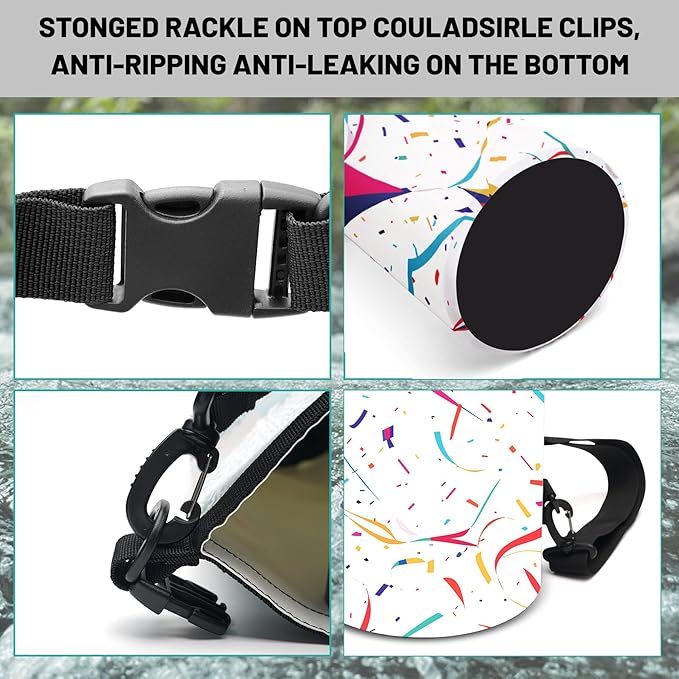 - Adjustable Carrying Options: Available in 5L and 10L with a removable shoulder strap for cross-body carry, or a 20L version featuring two adjustable straps for backpack-style comfort.Roll-top closure system provides secure watertight seal, keep your gear dry in any wet situation.Unique Colorful Modern Abstract Art design dry bag backpack Carry it your way!