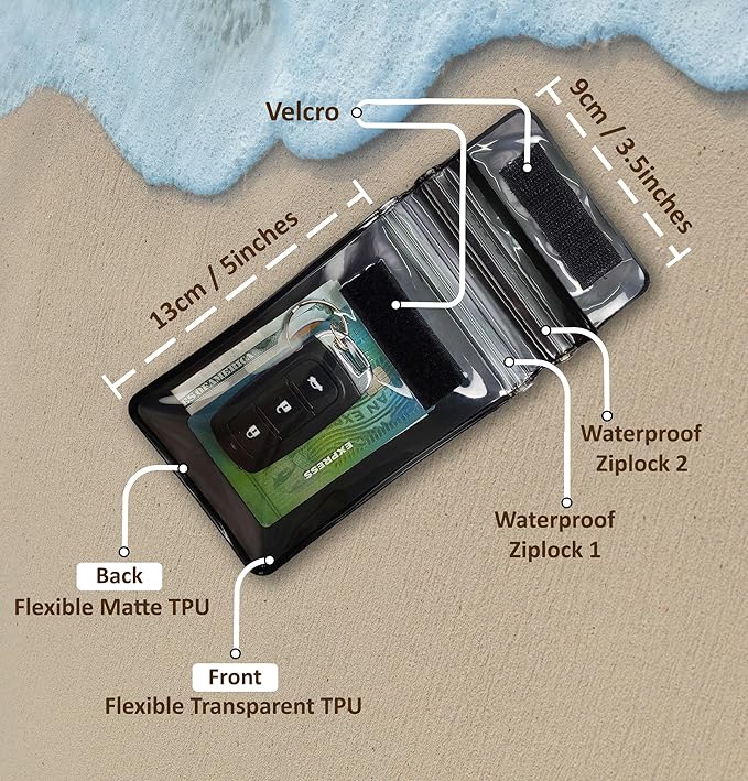 • Durable TPU Material – Crafted from robust, flexible TPU, this waterproof pouch is designed to withstand everyday wear and tear, while offering long-lasting protection for your valuables.