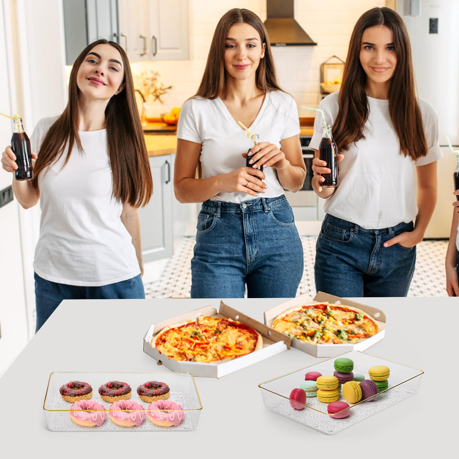 - Elegant Look: Our decorative retro-styled trays are designed with transparent surface with gold rim. And they are crafted with a decorative bottom. The elegant appearance greatly makes your foods more appealing. A fancy table settings for you!