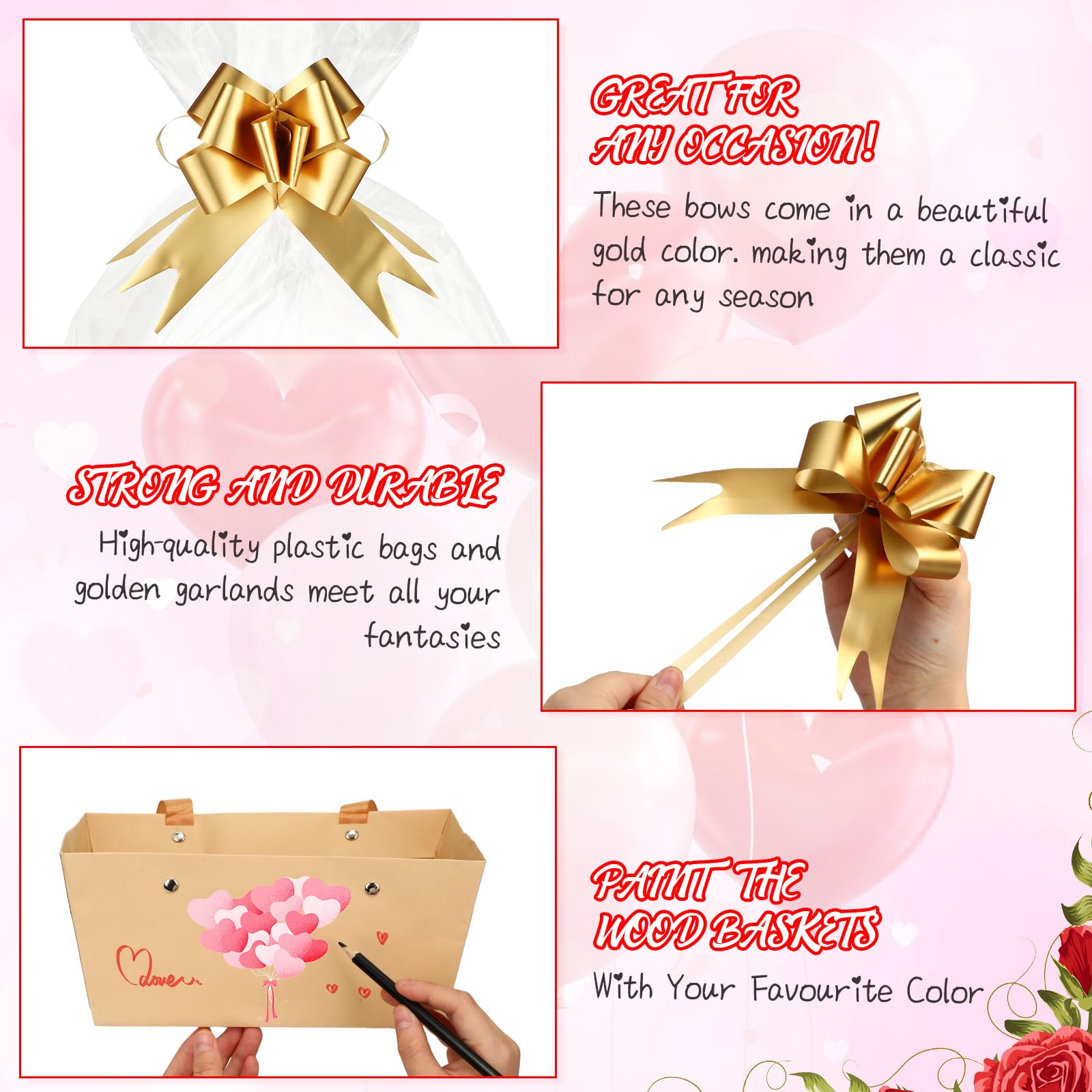 - Complete Package: with 12 empty gift baskets, 12 plastic bags, and 12 bows, this complete package has everything you need to create stunning gift presentations; The added bows can help bring your gifts to life and make them stand out; It's an ideal solution that saves you time while still providing quality results; The product is folded and shipped, and it is normal to receive the goods that there may be traces of folding