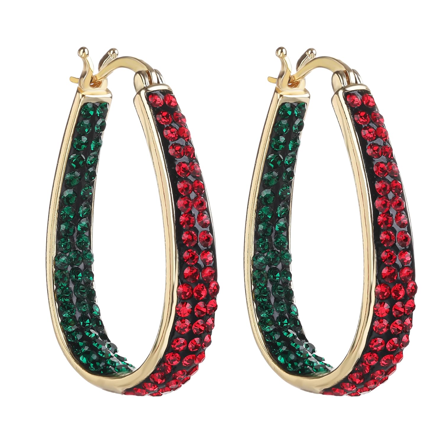 Crystal Hoop Earrings - Silver Plated Inside Out Oval Shape Hoop Earrings for Women, 1.2 Inch (Christmas Gold Plated)