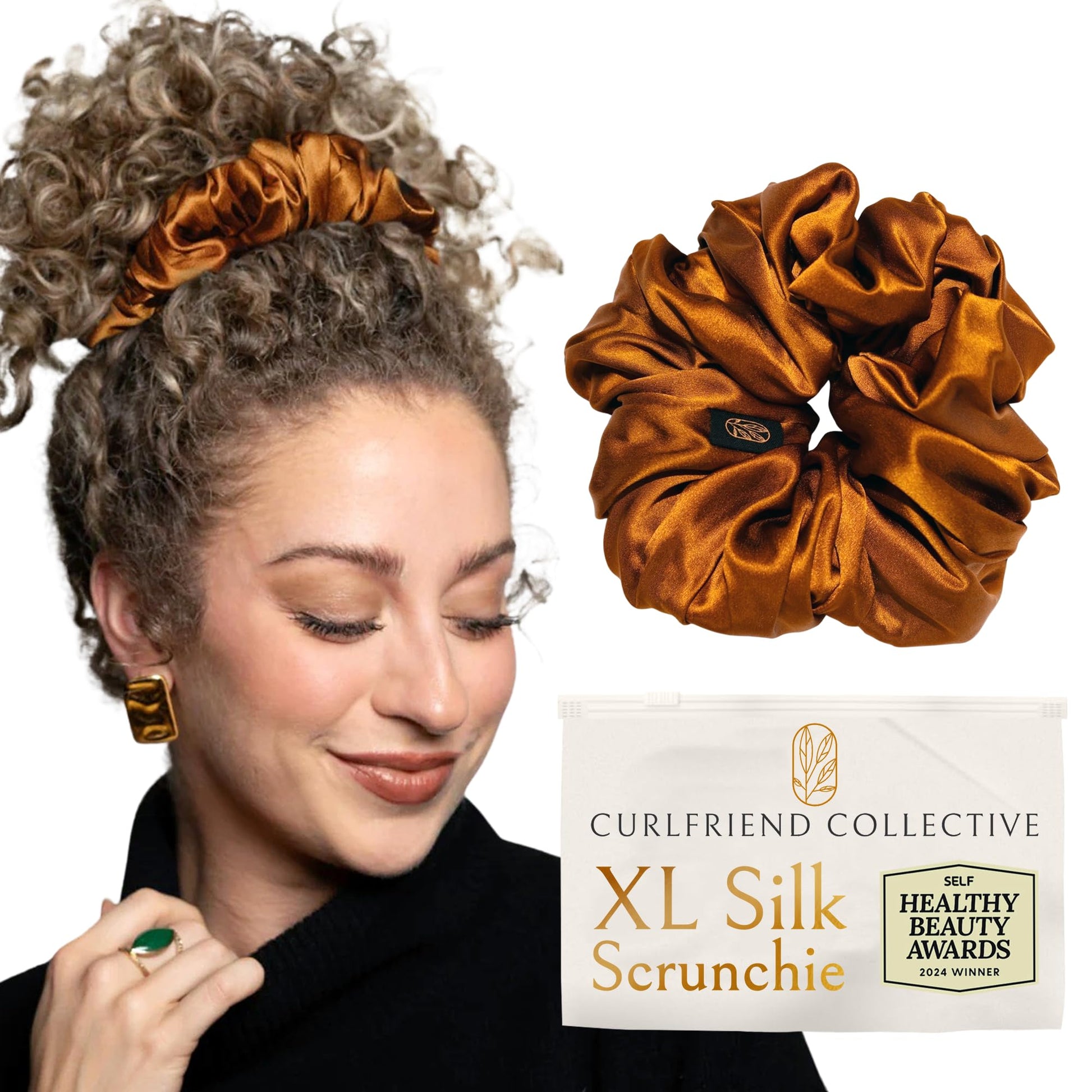 Curlfriend Collective Scrunchies for Women, Extra Large Silk Scrunchies for Curly Hair, Silk Hair Ties No Damage, Hair Accessories for Thick Hair, Ponytail Holders -Pumpkin, XL