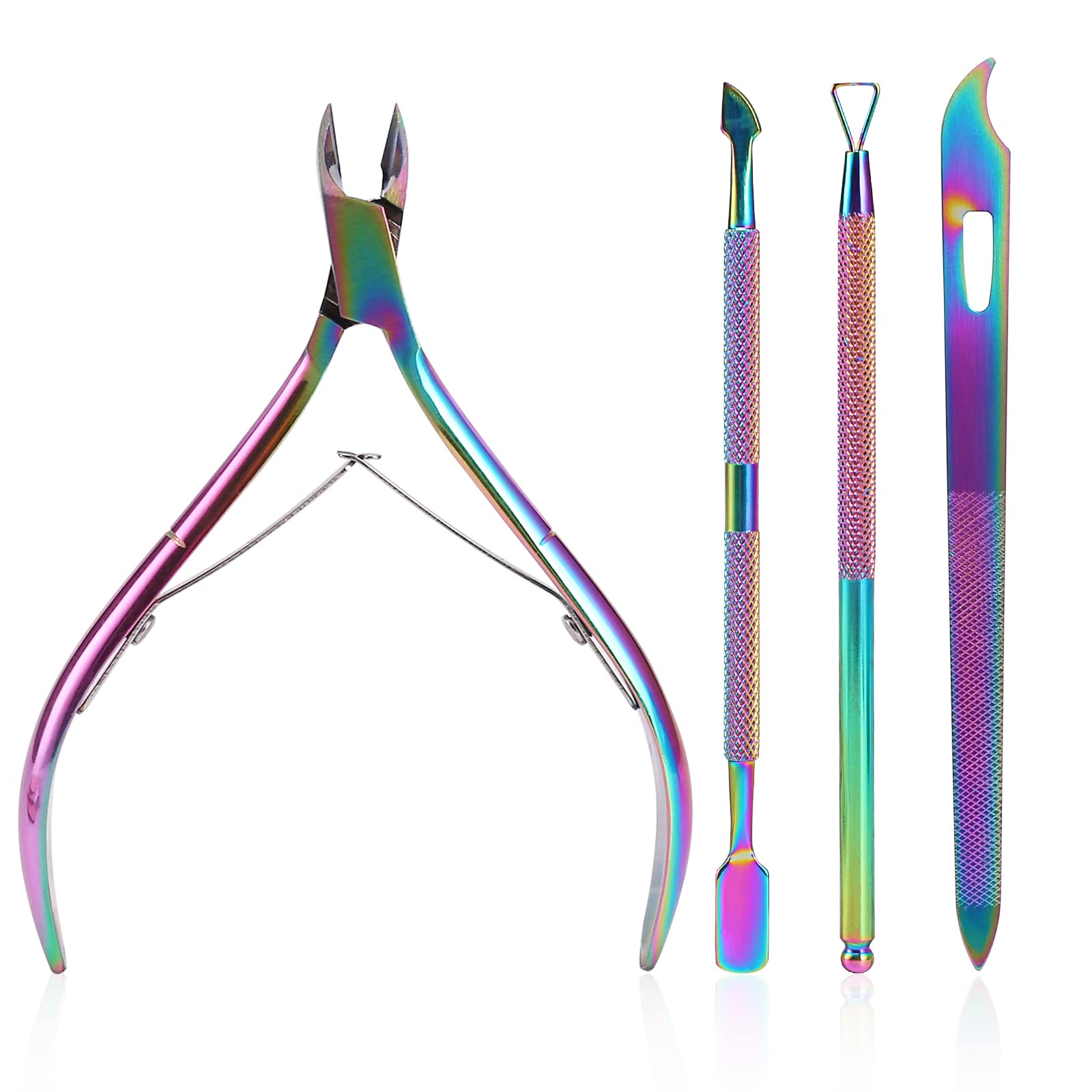 - 【Effective Cuticle Remover Tool】-Including cuticle trimmer,cuticle pusher and cutter,and nail file.The cuticle pusher flat head to gently push back the cuticles on your nails;The cuticle trimmer to neaten cuticles;The cuticle pusher head to peel or remove gel nail polish;The cuticle cutter sharp head push down the cuticles at the corners of your nails;The metal nail files can shape and smooth your nails;