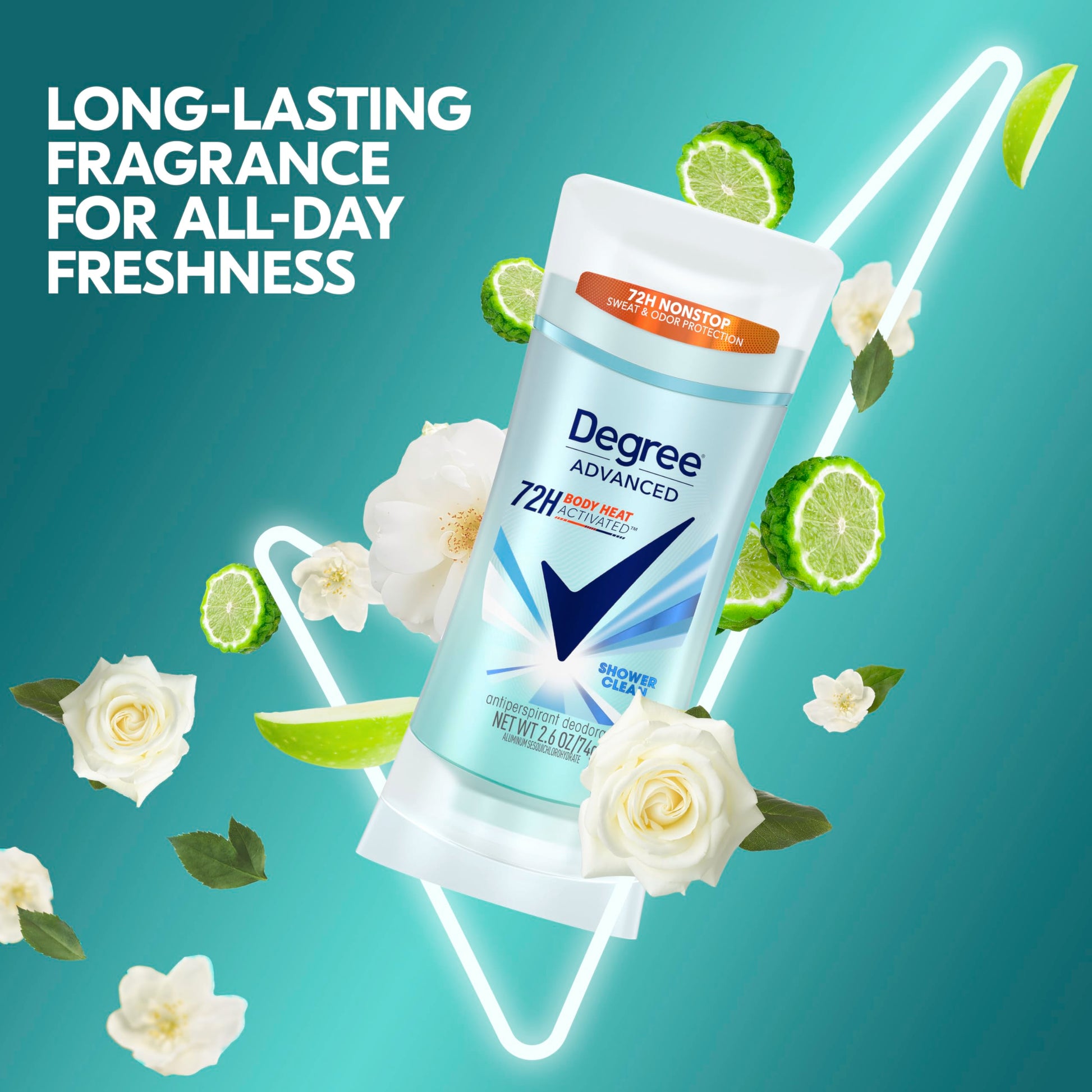 - 72-HOUR PROTECTION: Active lives need Degree Women Shower Clean Antiperspirant Deodorant. This antiperspirant deodorant for women delivers confidence with 72-hour sweat and odor protection.