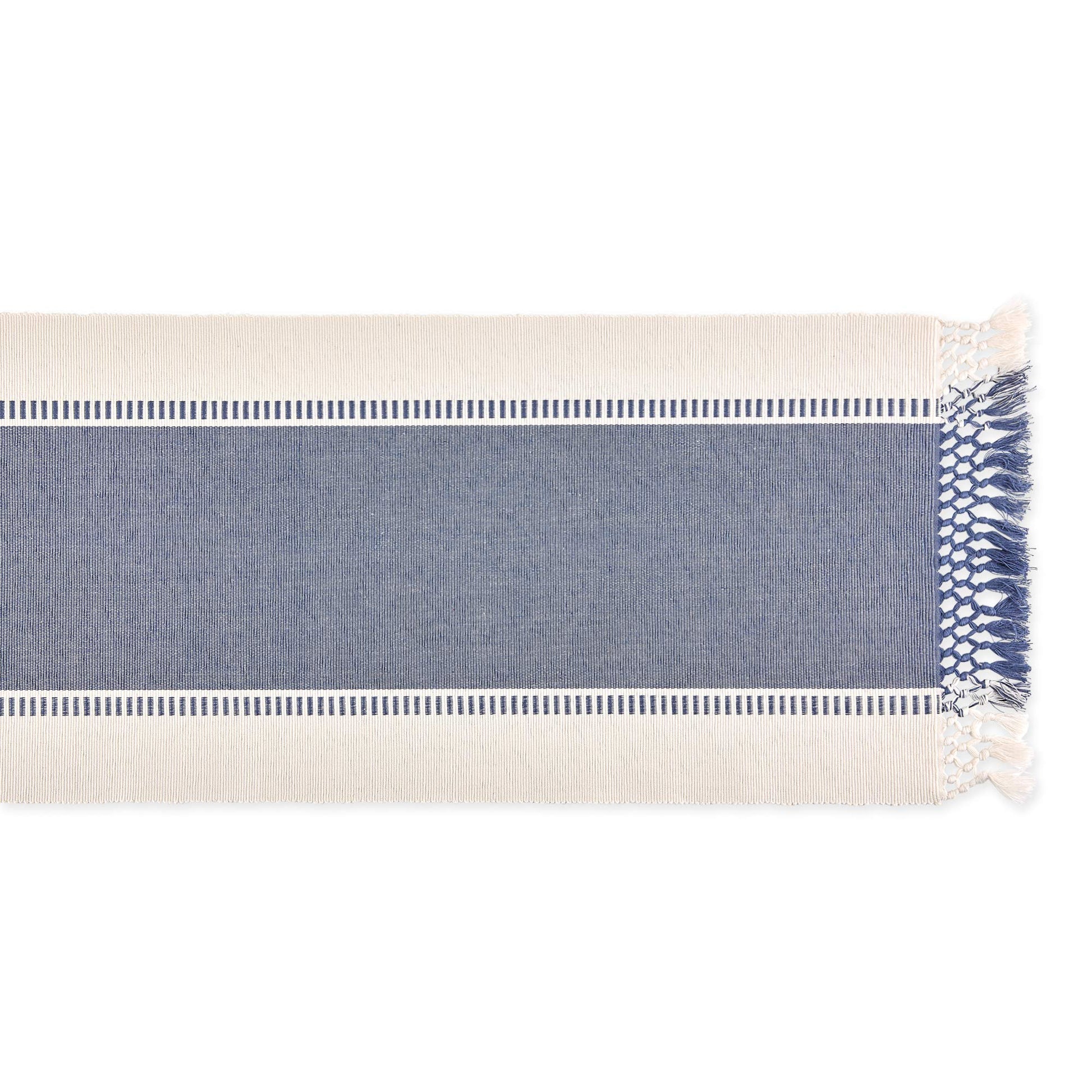 DII Dobby Stripe Woven Table Runner, 13x108 (13x113.5, Fringe Included) French Blue