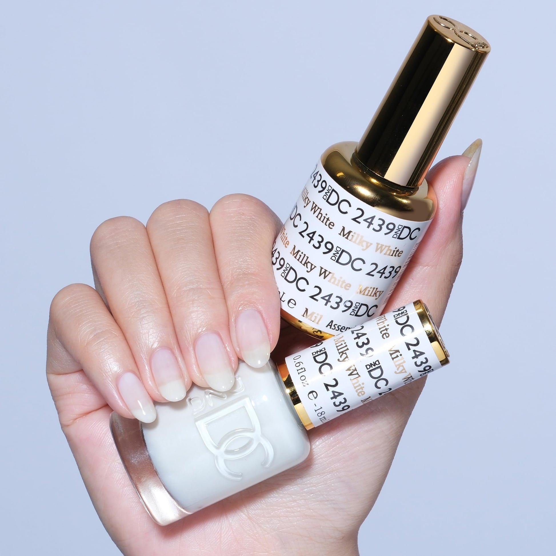 DND DC Gel Polish Set, Sheer Collection, UV/LED Gel Polish and Air Dry Nail Lacquer, Matching Chip-Free Polish Duo, 2439 Milky White, 0.5 Fl Oz