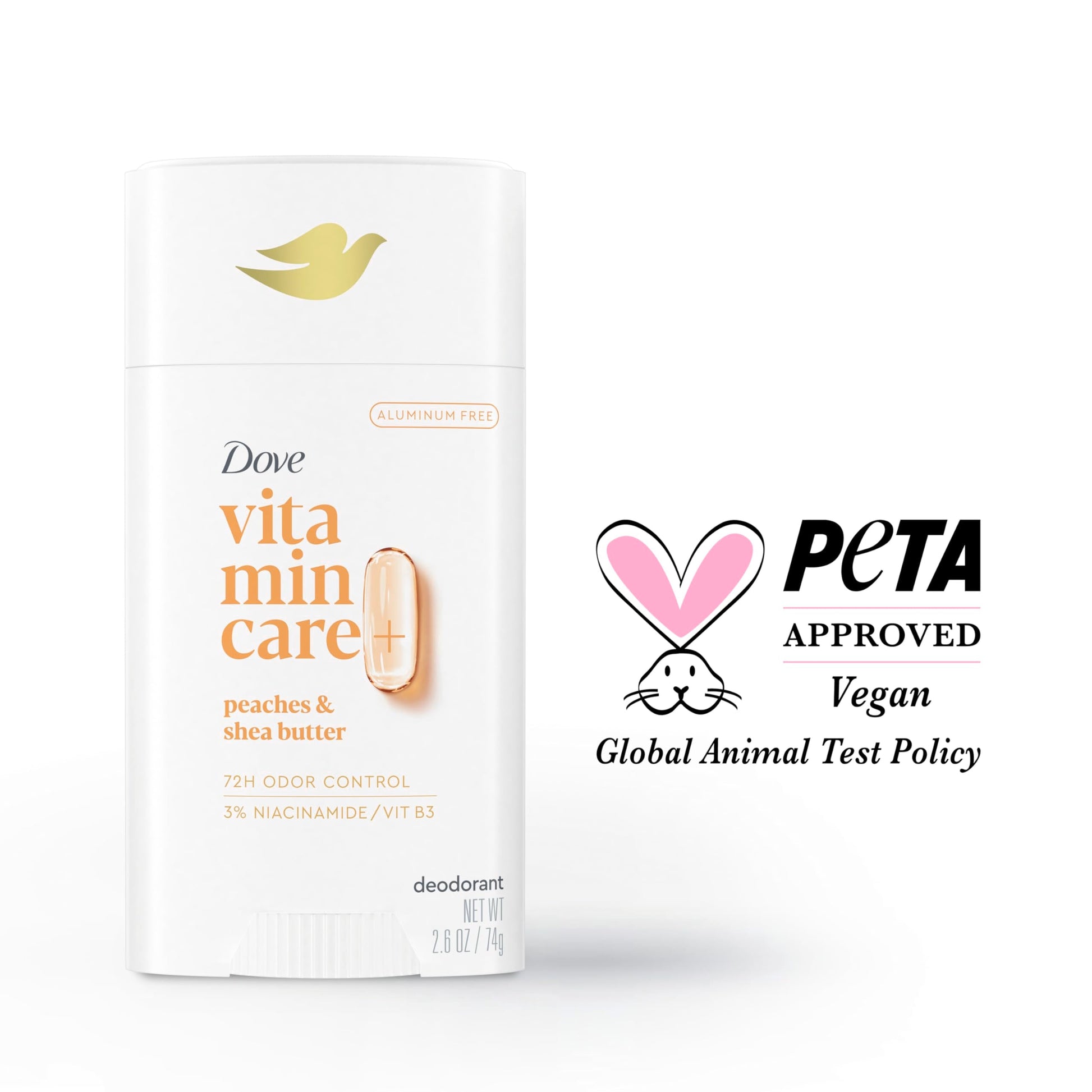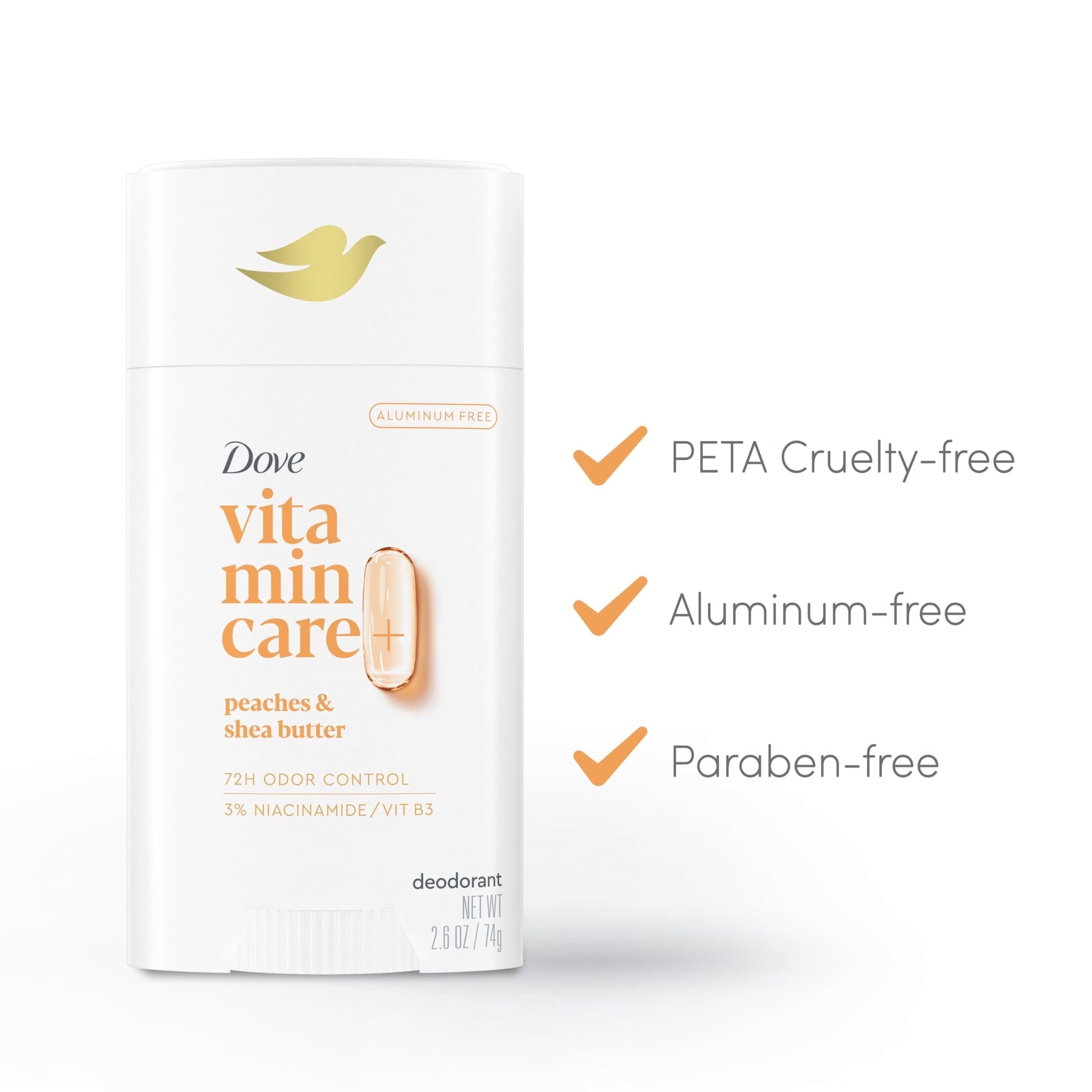 Dove VitaminCare+ Aluminum Free Deodorant Stick for 72H Odor Protection Peaches & Shea Butter Breathable Deodorant for Women 2.6 oz
