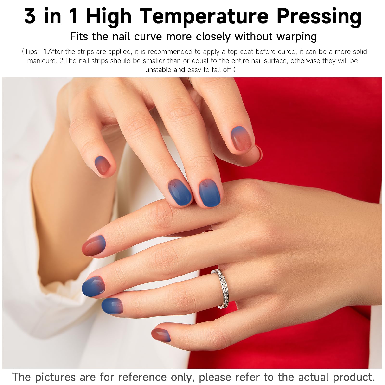 - Material & advantages introduction: Our gel nail strips are pre-cured 60%, nail stickers for nail art is made of real gel nail polish, with elasticity and luster, durable, can last for two Week, harmless, safe and odorless, very skin-friendly