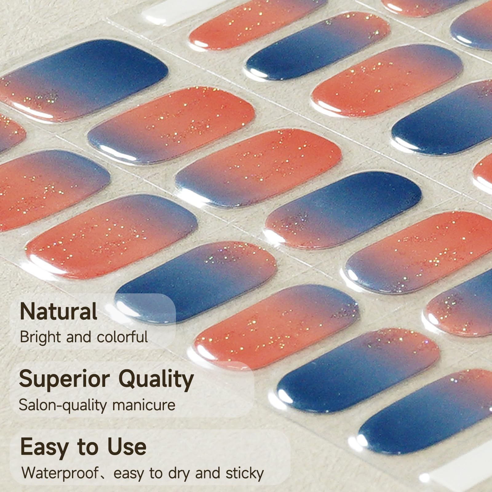DUKASOU Semi Cured Gel Nail Strips for Christmas, 28 pcs Gel Nail Strips Work with Any UV Lamp, Long Lasting Gel Nail Stickers Full Nail Wraps, Salon Quality, Easy to Apply (Sunset)
