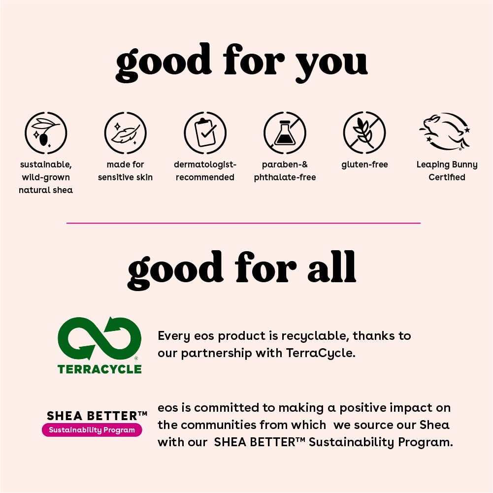 - SUSTAINABLY-SOURCED INGREDIENTS: eos lip balms have wild grown, sustainably sourced, natural shea butter and oil to leave your lips smooth and nourished