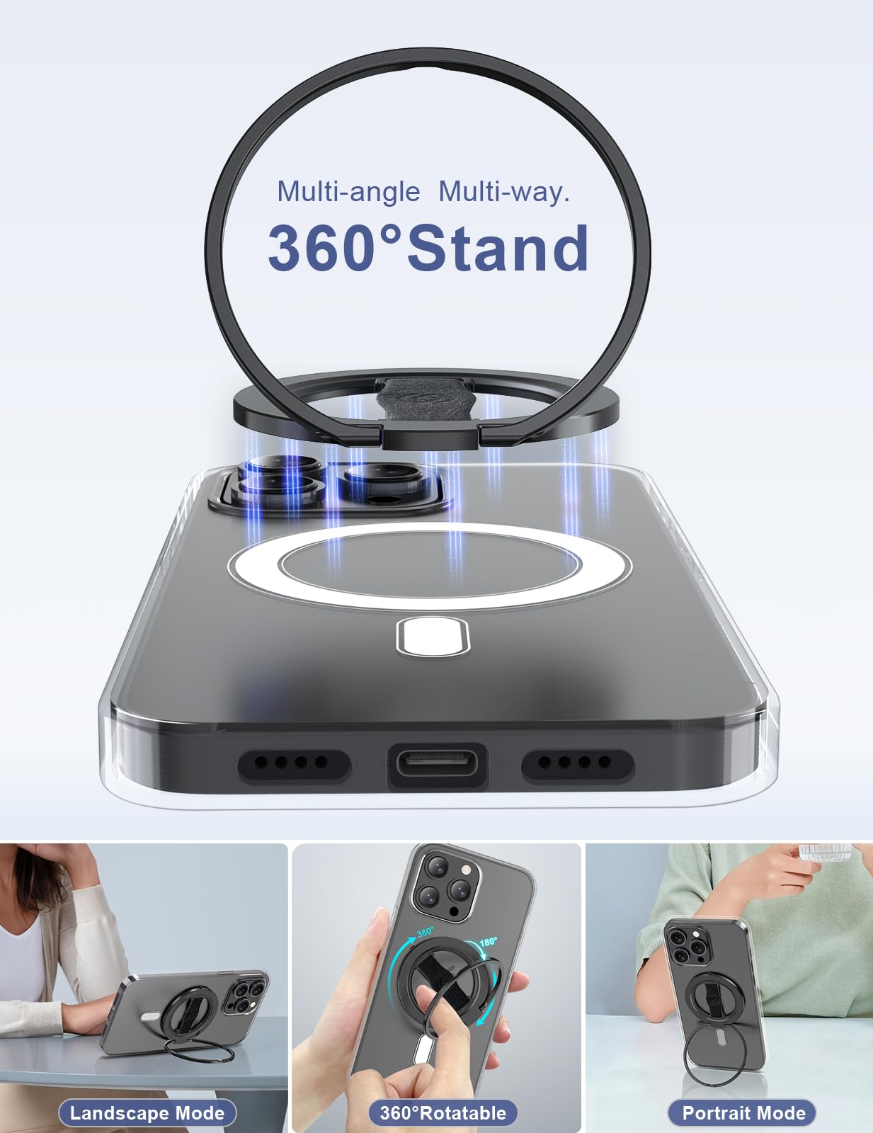 - Practical Phone Stand: The Phone Kickstand incorporates a gearless hinge mechanism, damping Control Positioning, and adaptive infinite adjustment, enables the outer ring holder to achieve 180° flipping and 360° rotation. Easily adjust the viewing angle to suit your needs, whether in horizontal or vertical mode. Ideal for vertical TikTok videos, Facetime calls, and movie viewing.