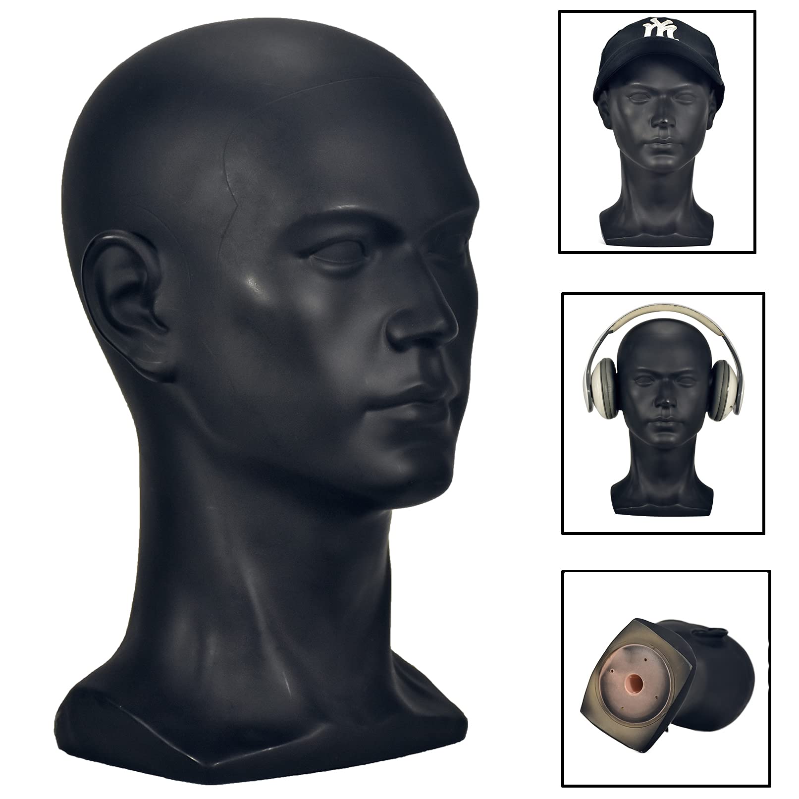 FanLin Male Mannequin Head Professional Manikin Head for Display Wigs Hats Headphone Mask Sunglasses Jewelry and Scravat Display Stand (Matte-Black)