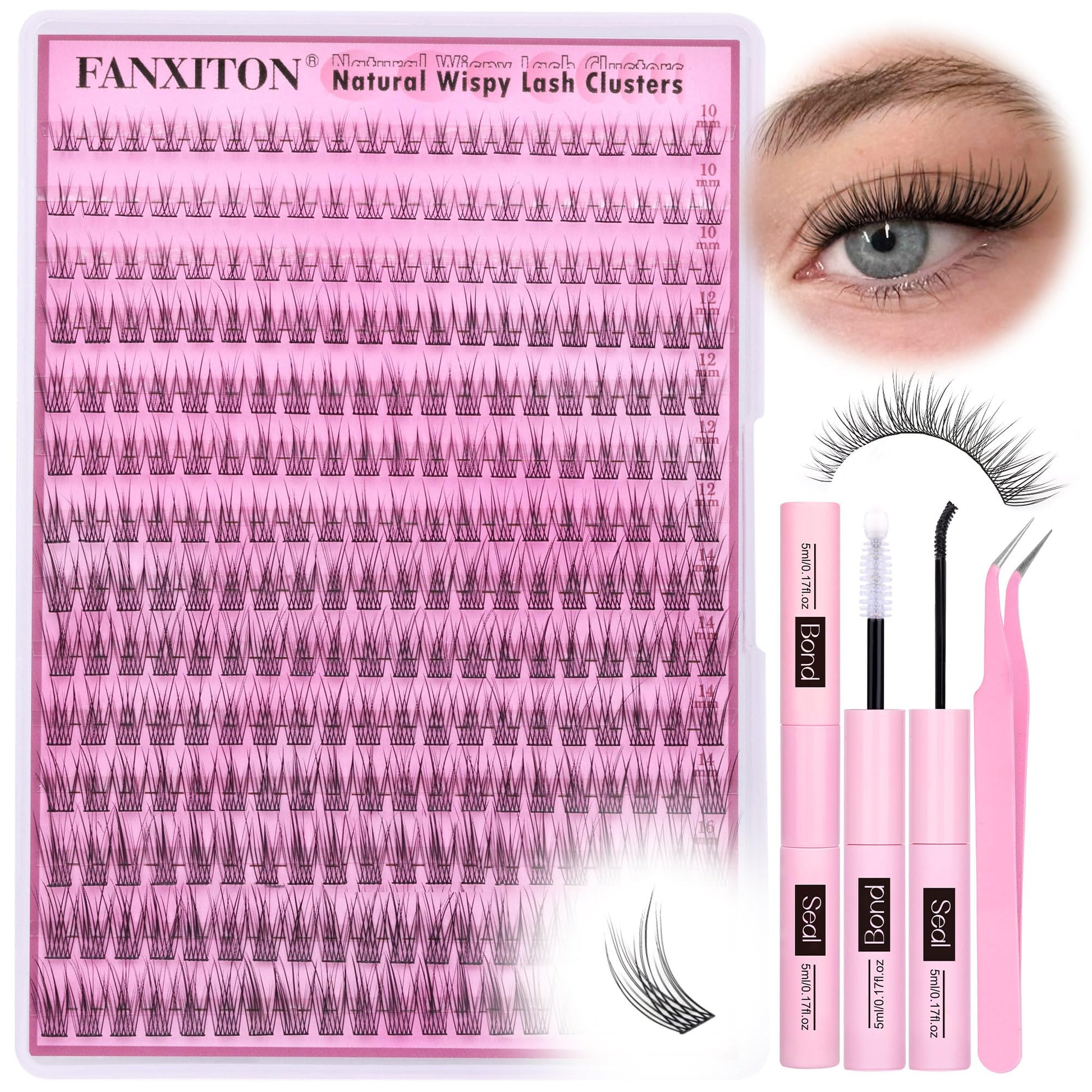 - FANXITON sweatproof lash clusters kit, which includes 280 pcs of wispy lashes clusteres, last bond and seal, and an lash tweezers ; The lash extensions kit includes all the tools needed to wear lash clusters, allowing you to easily enjoy the effects of an eyelash salon at home