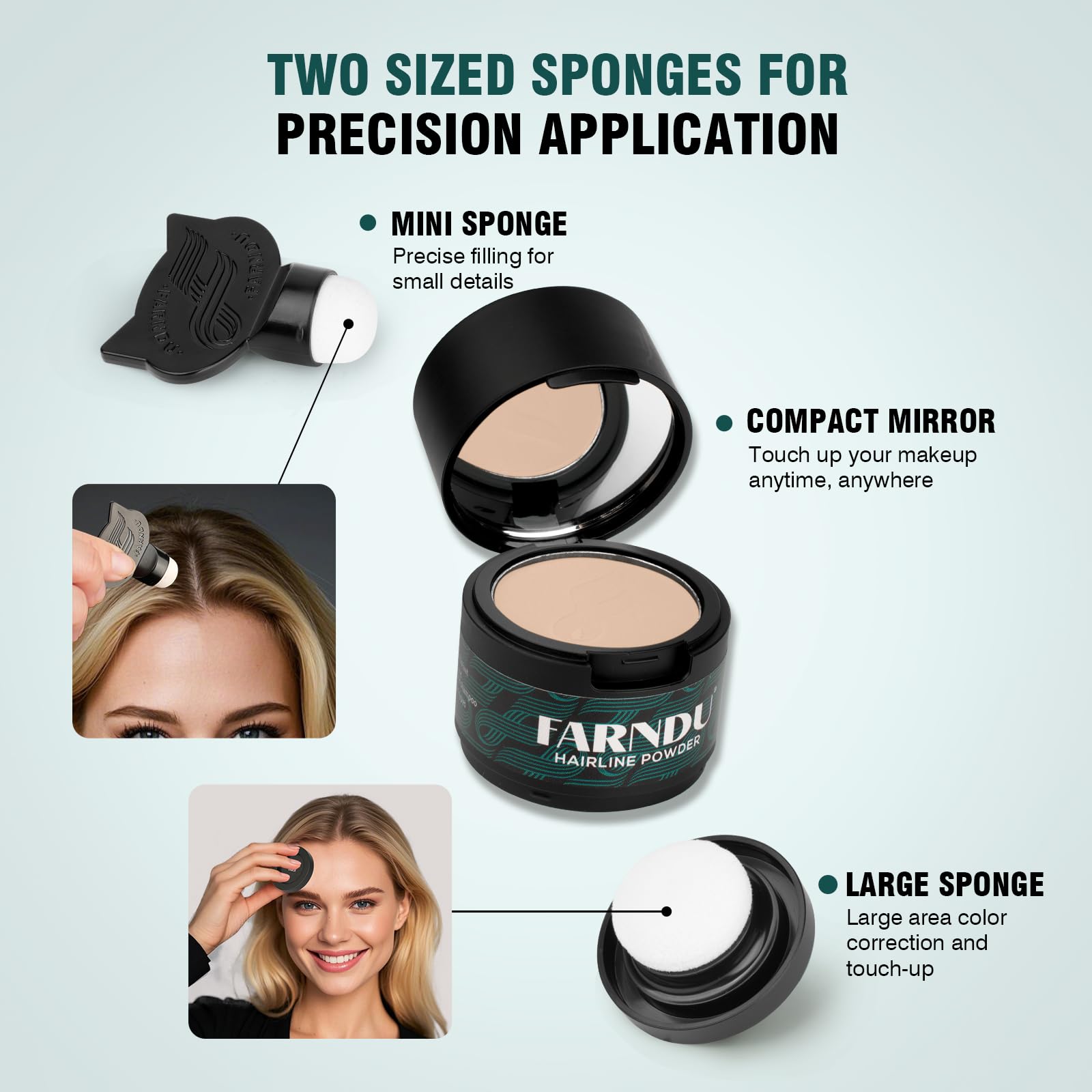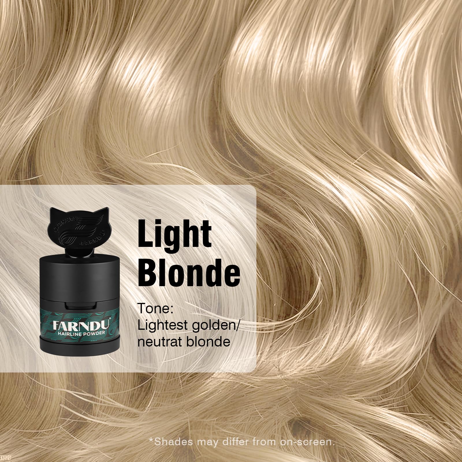 Farndu Hairline Powder 12g, Instantly Hair Root Touch Up, Hair Color Powder, Bald Spots Hair Color Concealer for Women & Men, 24-Hour Stain-Proof, Includes 2 Refills, for Thinning Hair, Light Blonde