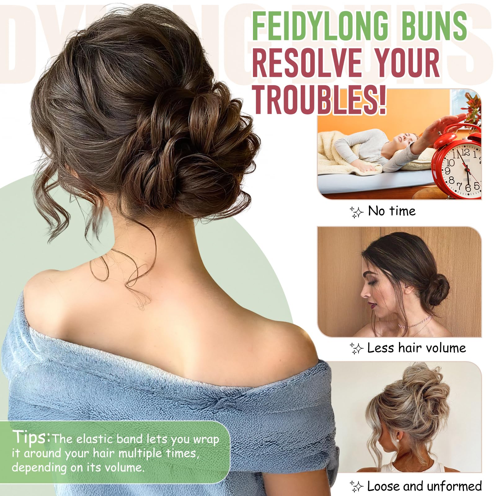 - 【Adjustable Size】: The hair bun hair piece is very easy to wear with a elastic hair band. messy hair bun can roll two turns around in your hair ponytail bun. If you feel that the hair bun is too big, you can secure with hair pins, which will make the hair bun tight on your hair