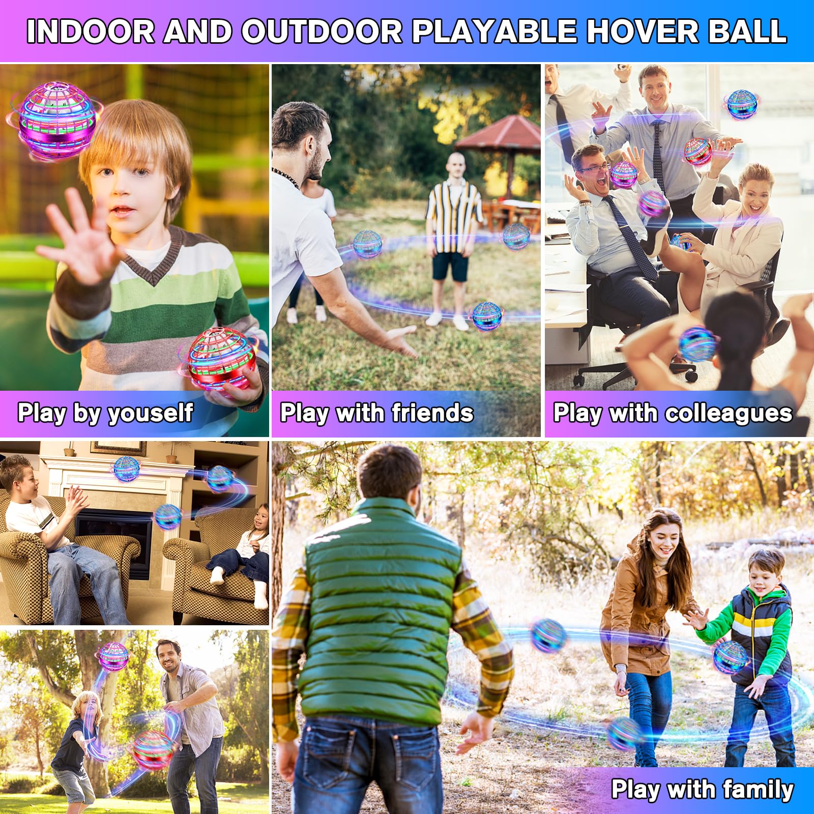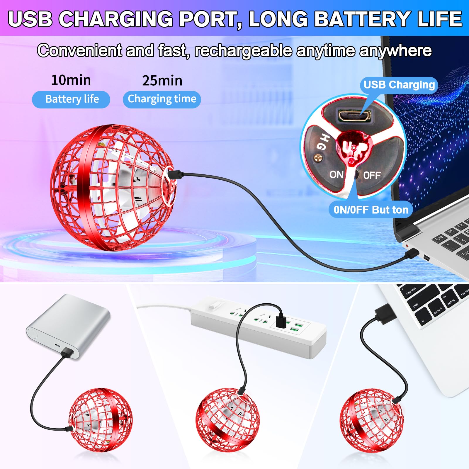 - 💗【Safe and Durable Flying Orb Toy】This flying orb ball is rigorously tested and made of high quality materials, soft and durable, drop-proof, light and flexible. You do not have to worry about flying toys easily damaged by children. It will automatically stop when it hits the furniture or anything else. The propeller is located inside the flying ball toy, which is very safe for children.Recommendation: Children under 6 years old need to play with parents.