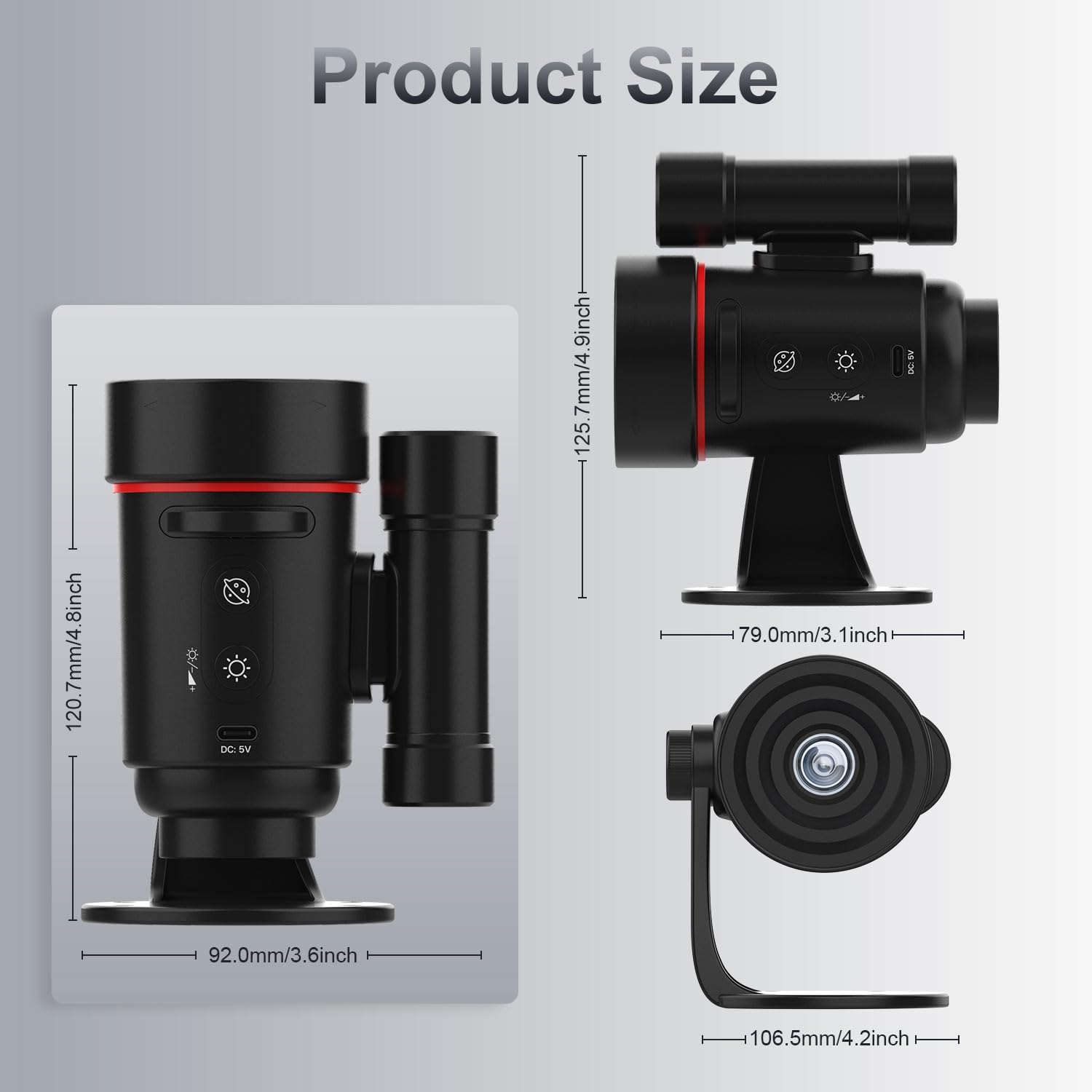 - Adjustable Focus & Clarity: Achieve crystal-clear projections at any distance with the rotatable top dial for precision focus control. Whether projecting onto a nearby wall or a high ceiling, simply twist the top to sharpen star patterns and celestial details. The advanced lens system ensures HD resolution, maintaining vibrant colors and crisp imagery even in larger spaces. This feature eliminates blurry edges, making it ideal for dynamic setups—use it in compact bedrooms or spacious living rooms without compromising visual quality.