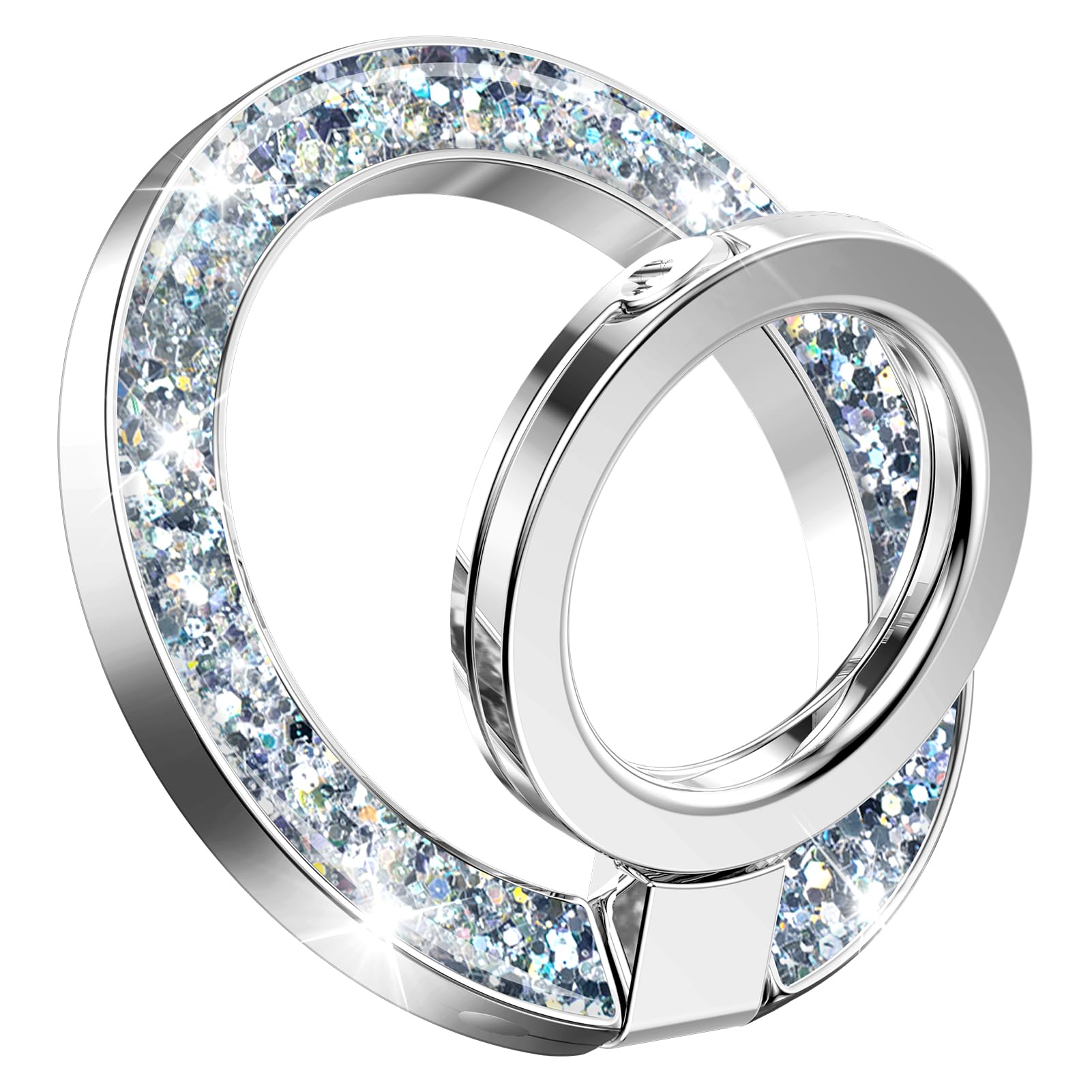 GVIEWIN Magnetic Phone Ring Holder, Compatible with MagSafe Phone Grip with Adjustable Stand, Magnet Phone Ring Kickstand for iPhone 16 Pro Max/Plus/15/14/13/12 Series/Other Phones (Glitter/Silver)
