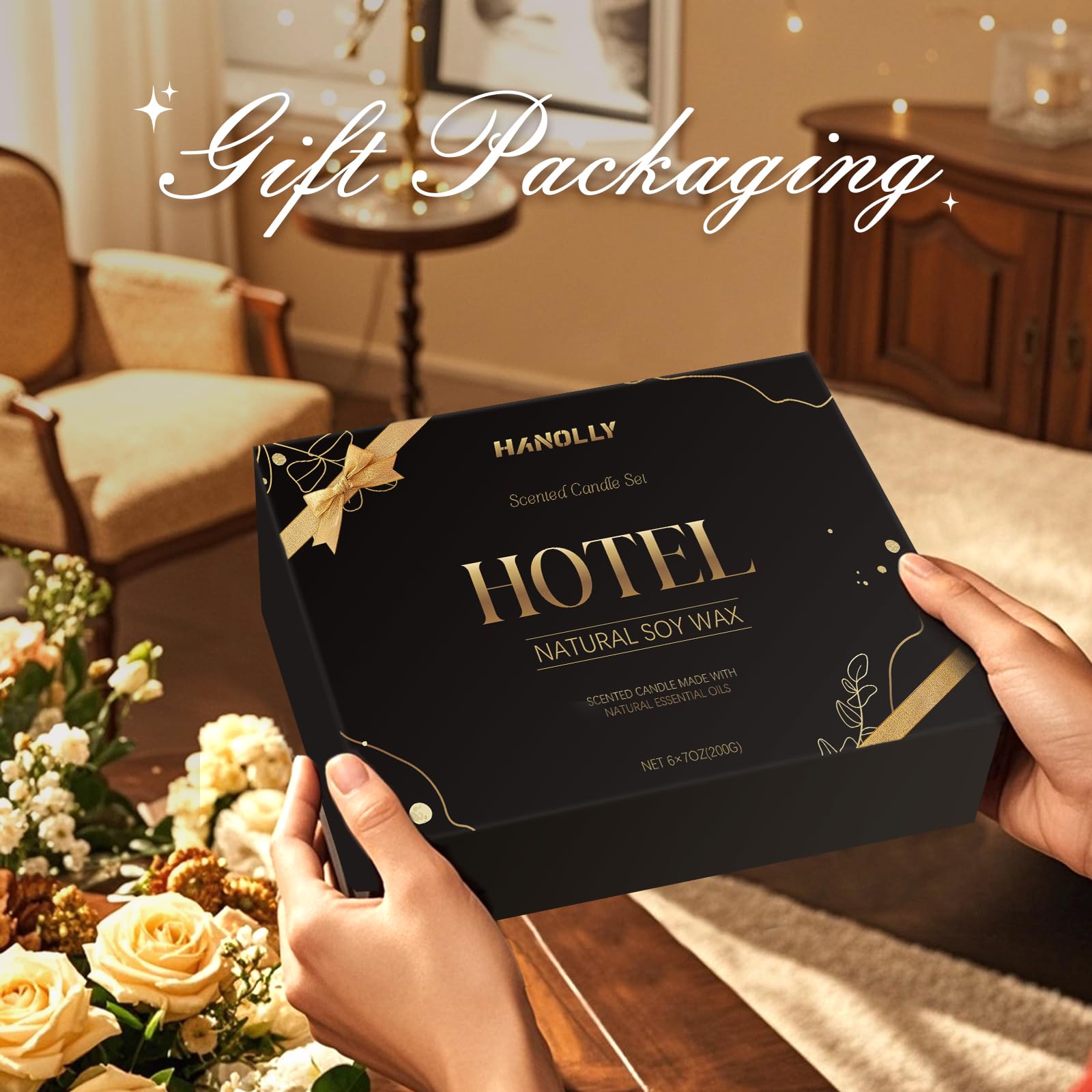- Thoughtful Luxury Gift Box for Any Occasion: Our scented candle gift set is elegantly packaged in a classic black box, making it an ideal gift for birthdays, Father's Day, Christmas, or housewarmings. Suitable for everyone—from spa lovers to busy professionals—this luxurious gift promotes indulgence and self-care, allowing anyone to enjoy a taste of hotel luxury at home.