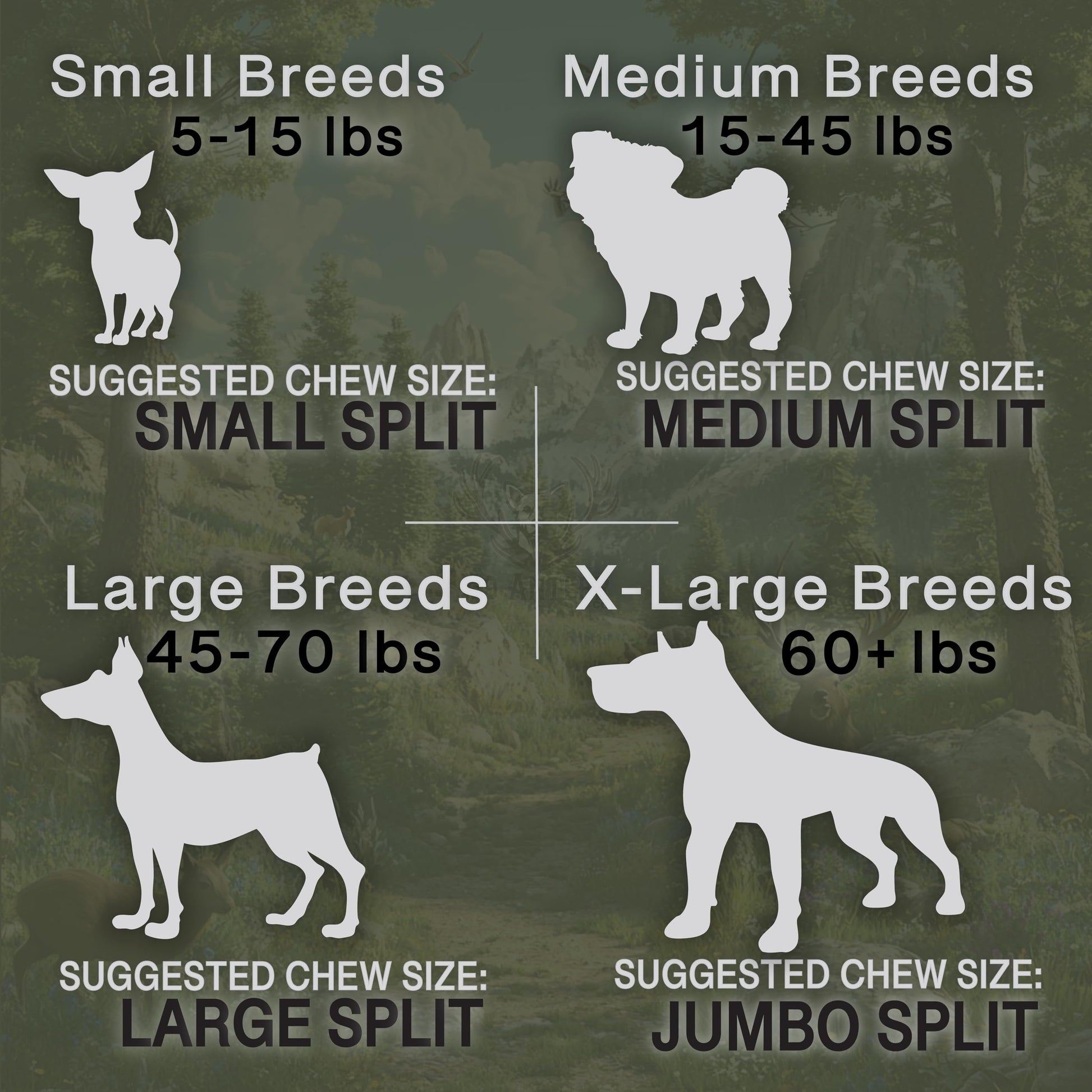 - Split Elk Antlers: Cut lengthwise to expose the soft, flavorful marrow, making them ideal for puppies, seniors, or moderate chewers. Consider our Whole Elk Antler for aggressive chewers.
