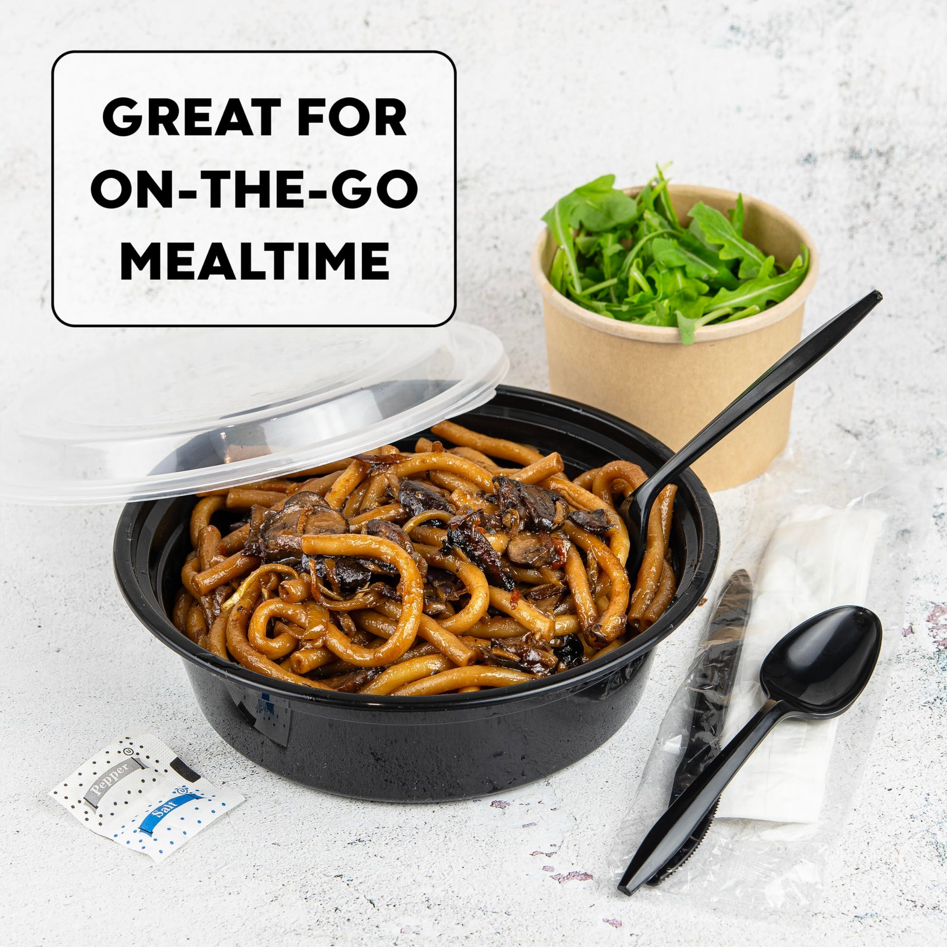 - PRE-WRAPPED UTENSILS - Everything wrapped up into one - Made of medium weight polypropylene, each piece of cutlery is built to hold up throughout the entire meal to help minimize breakage, bending, and snapping for a hassle-free dining experience. The classic black color also complements any décor for added versatility.