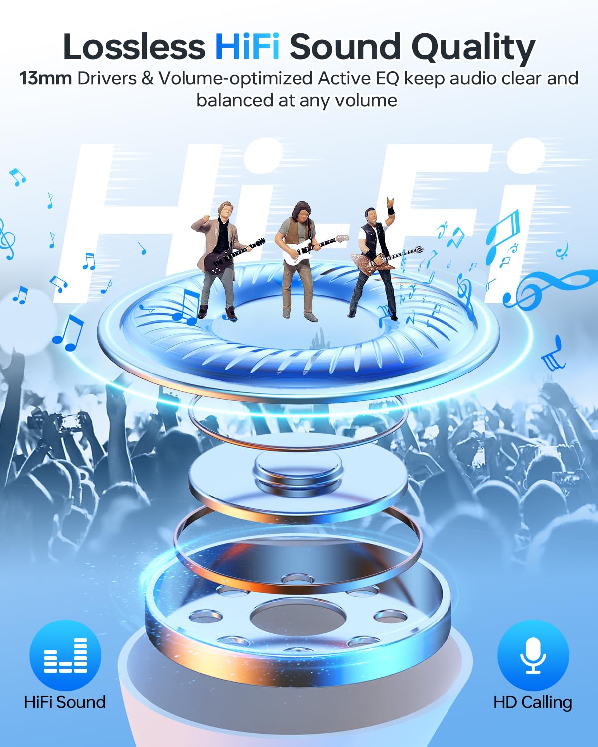 - Ultimate Hi-Fi Sound Wireless Earphone - Hear all the details: The 13.2mm large dynamic driver allows for a larger vibration area and deeper beats, while the rigid and hard titanium-plated diaphragm offers purer treble performance. In addition, three wide bands and sensitive transient response give you more details, a variety of acoustic parameters have been fine-tuned to achieve the optimum sound quality.
