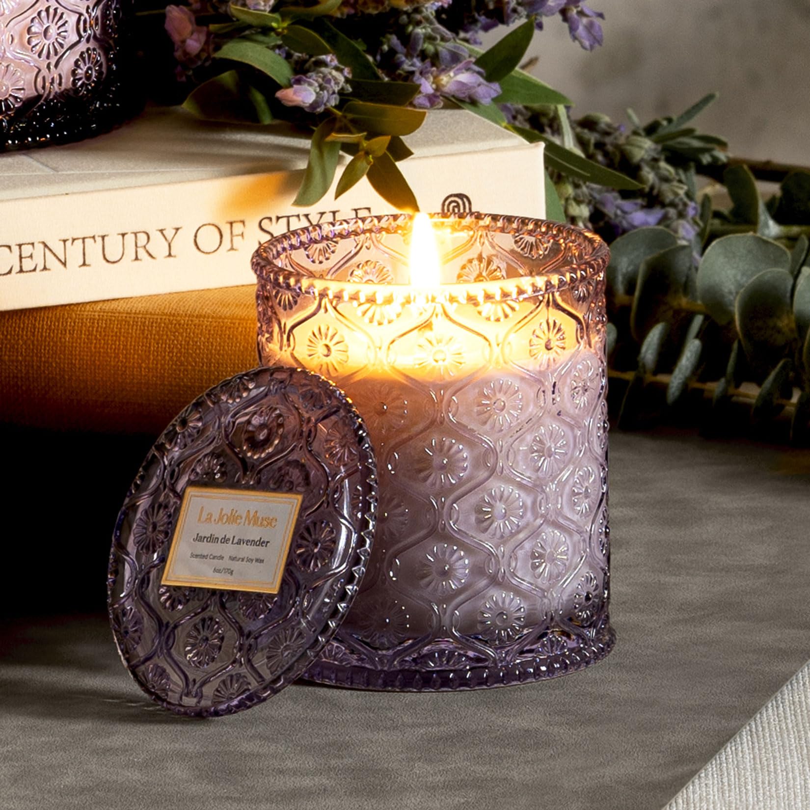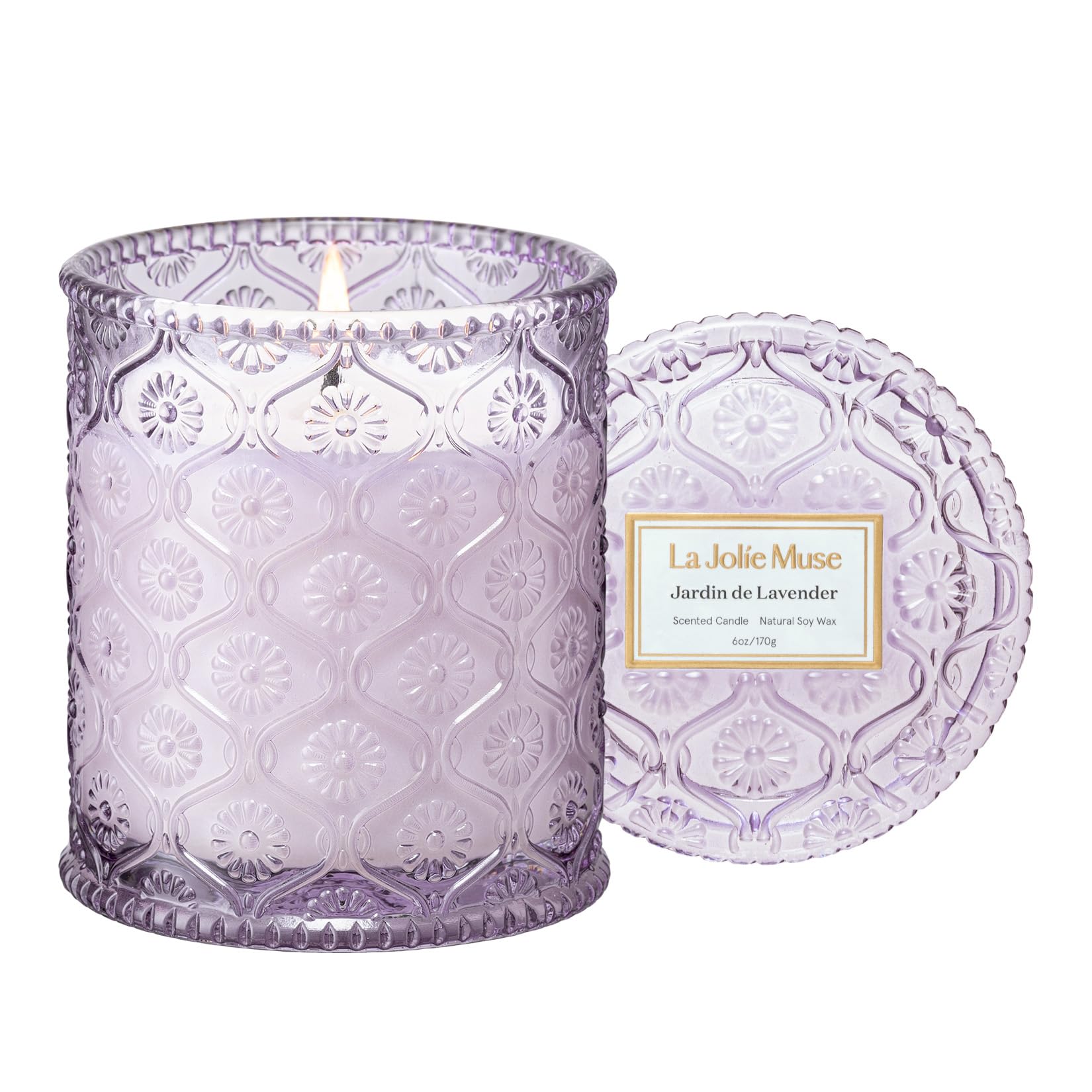 LA JOLIE MUSE Lavender Lilac Candle, Mothers Day Candles Gifts for Women, Jardin de Lavender Scented Candle, Aromatherapy Coconut Candles for Home Scented, 6 Oz 40 Hour Burn Time