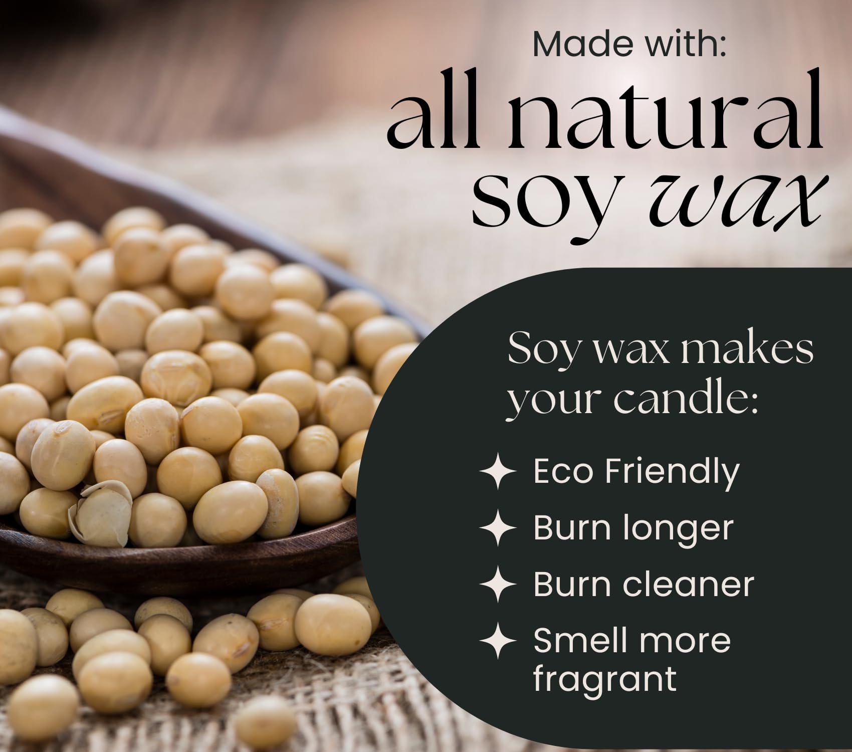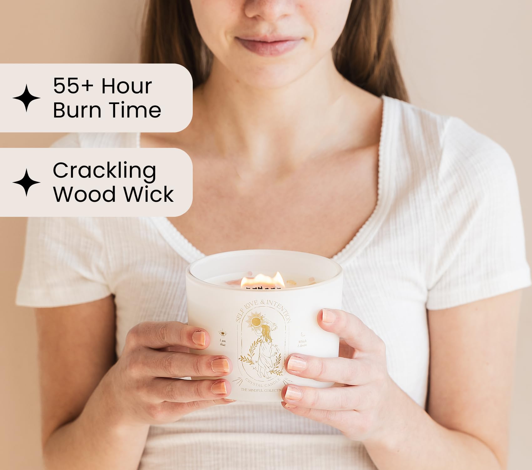 - Premium Materials - Alongside real crystals, our crackling wood wick candle is crafted with a 100% soy wax formula for a clean, consistent burn and enhanced fragrance distribution
