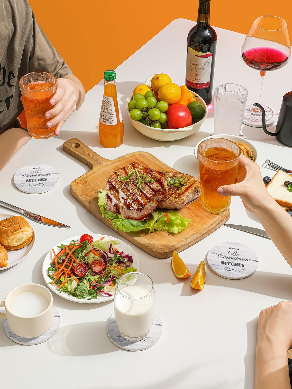 - Cool, Cork Backing Design : Each 8-piece set of LIFVER funny coasters of drinks features a durable cork back to help protect furniture or tabletops from scratches or scuffs. And they will not slide around on your desktop easily