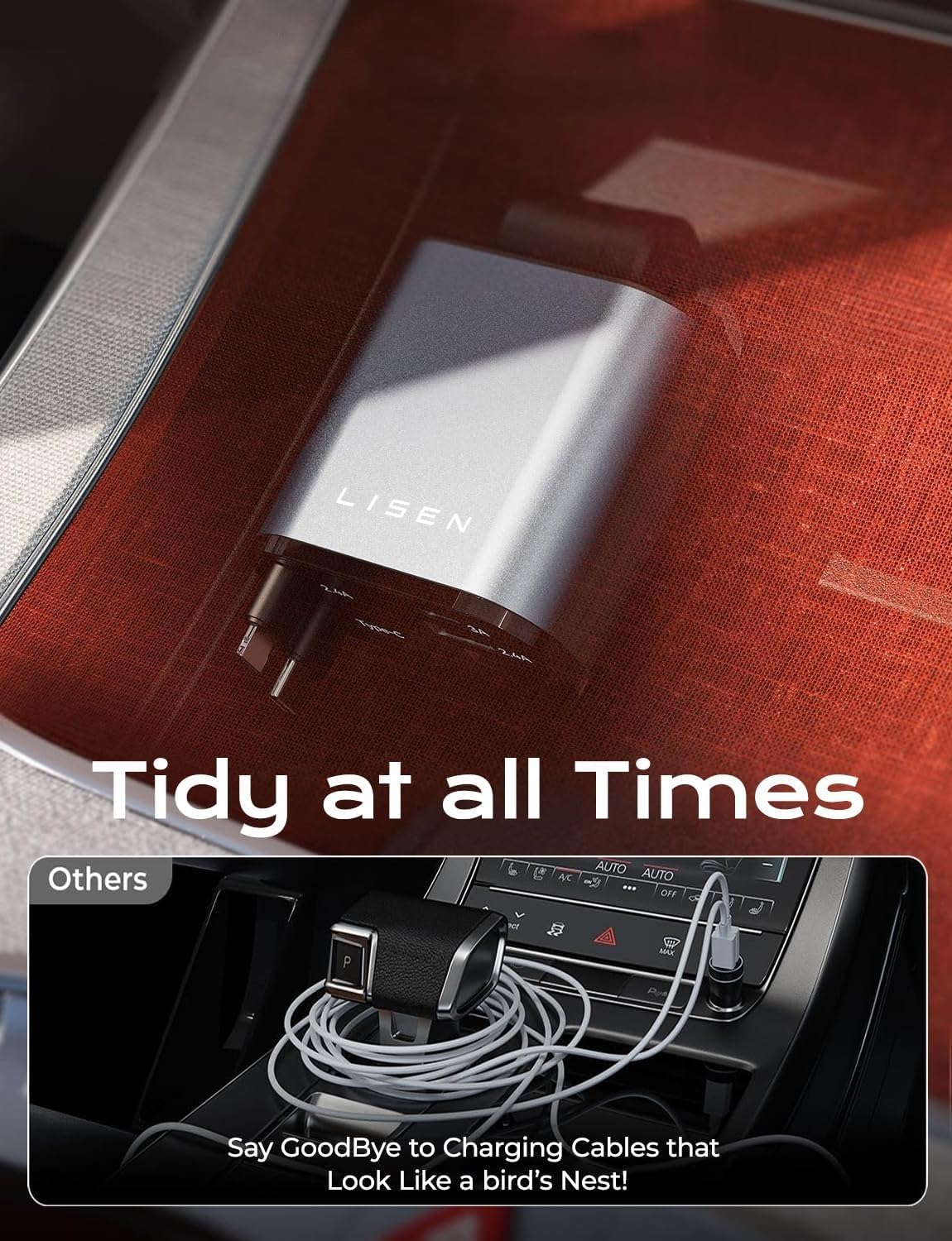 - 69W 4 Port Car Charger: Equipped with a 30W PD USB C port, a 12W USB A port, and additional charging options, this powerhouse charges up to four devices simultaneously. Ideal for fast charging the iPhone 16 Pro Max or other gadgets, itโs versatile enough for truck accessories or stylish car essentials. Its smart power distribution maintains high speed charging across all ports. Retract Instruction: Pull and hold the cable, gently extend 1 cm more, then release for automatic retraction