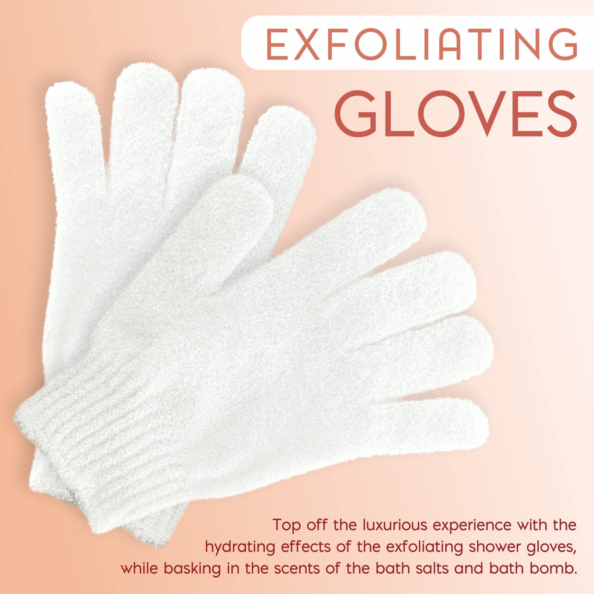 - DELUXE 13 PIECE SPA SET - This spa gift basket has everything a woman needs! It includes Shower Gel, Bubble Bath, Shampoo, Body Lotion, Body Scrub, Bath Salt, Rose Bath Soap, Loofah Back Scrubber, Rose Bath Bomb, Bath Towel, Moisturizing Shower Gloves. Packed in a stunningly wrapped Wired Bread Basket, it also has a gift note card for you to personalize it.
