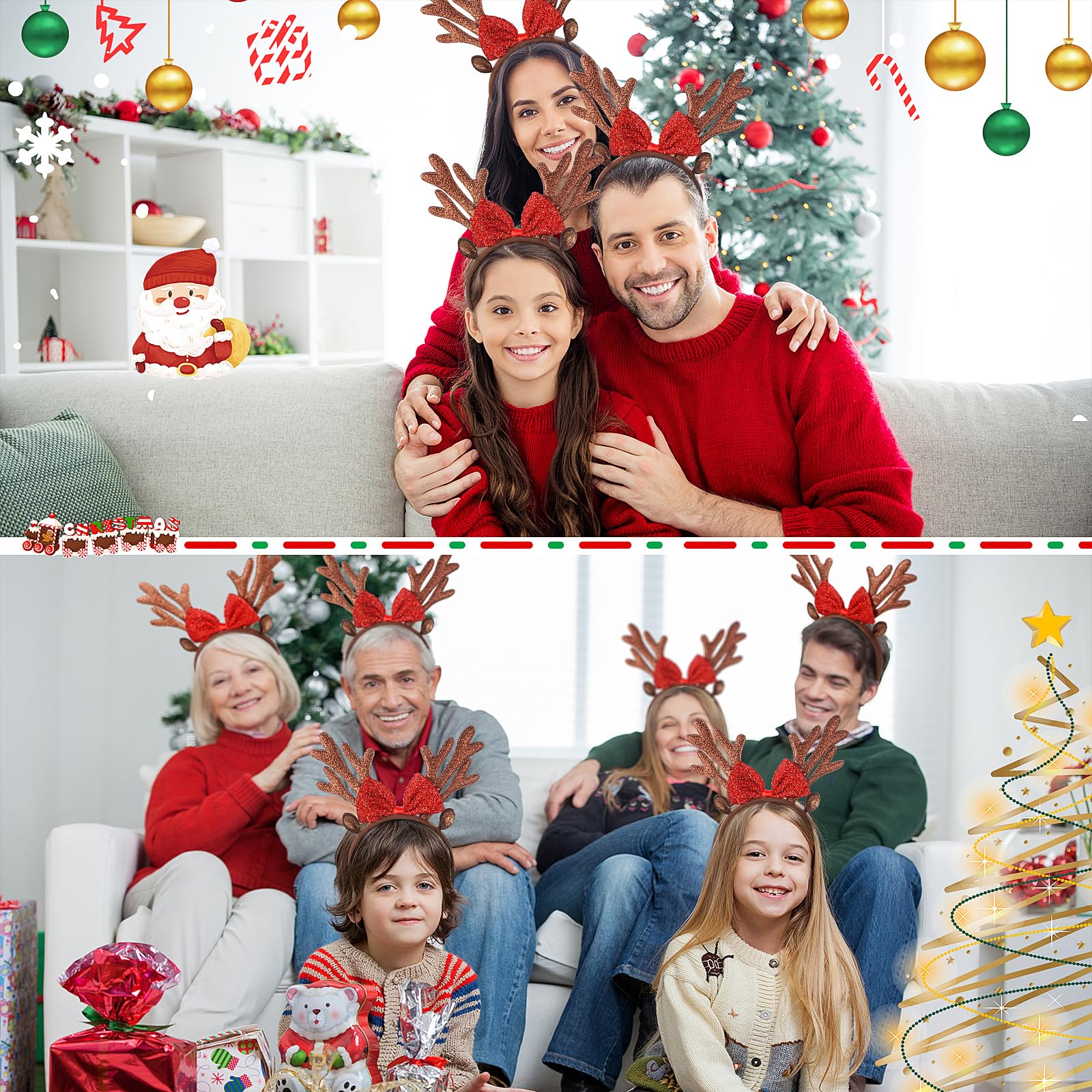 Lyrow 24 Pcs Reindeer Antlers Headbands for Adults Antlers Headband with Bells Halloween Christmas Holiday Party Gift (Bow Style)
