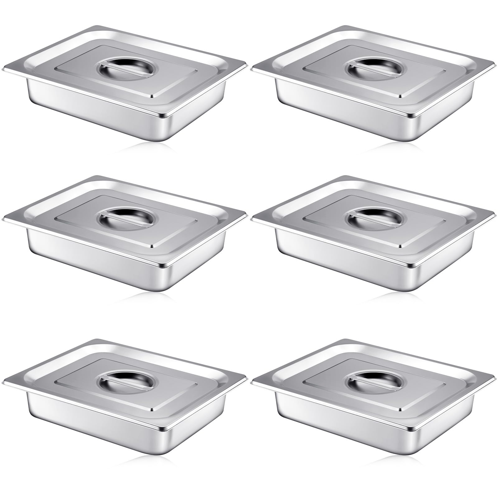 Mifoci Stainless Steam Hotel Pan with Lid, 2-1/2 Inch Deep Steam Table Pan Restaurant Supplies Reusable Anti Rust Catering Storage for Home, Party, Restaurant, Hotel, Buffet(6 Sets,1/2 Size)