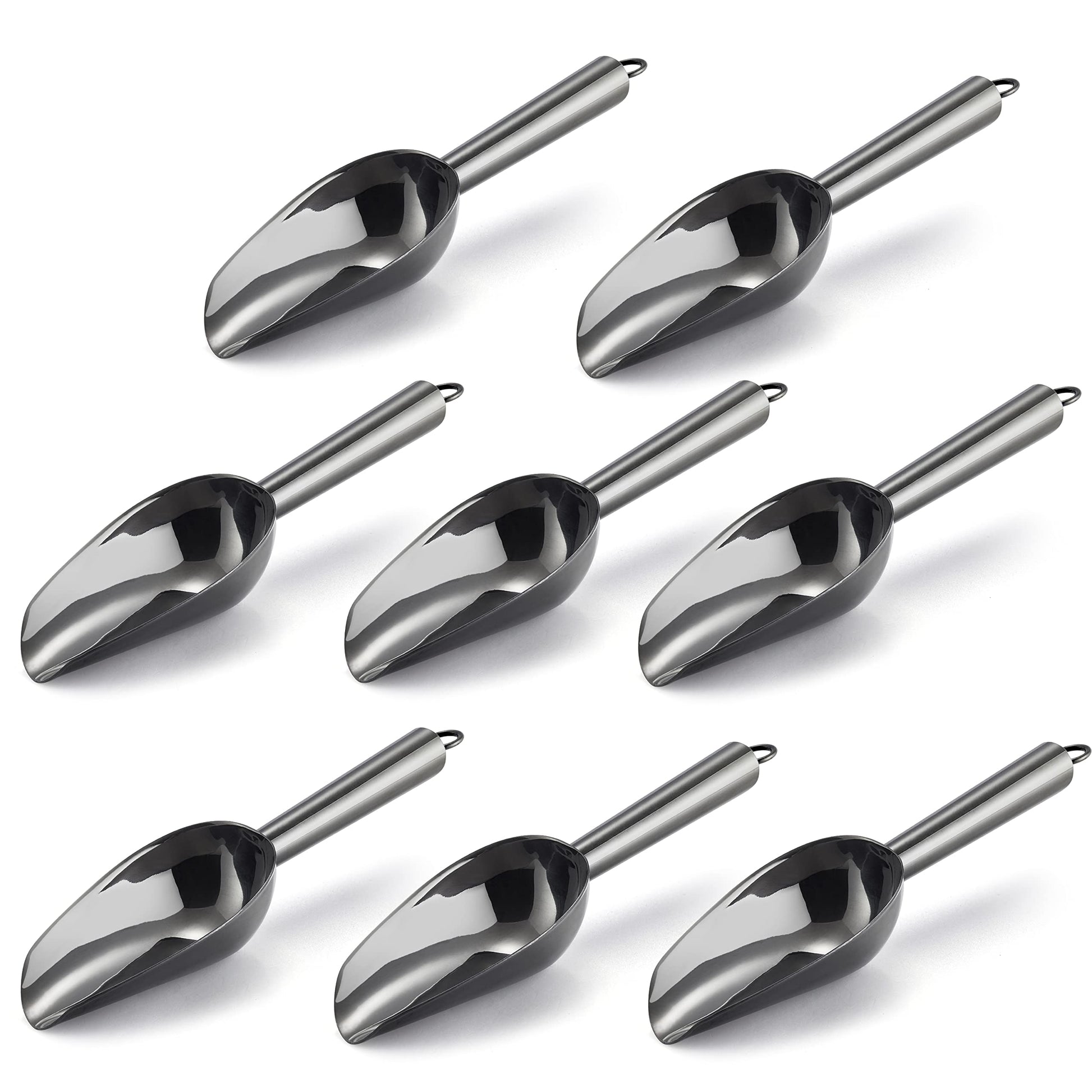 Mini Ice Scoop Set of 8, E-far 3 Ounce Platinum Black Stainless Steel Scoops for Candy/Flour/Sugar, Small Metal Scoops for Party/Canisters Jars/Kitchen Bar/Ice Maker, Rust Proof & Dishwasher Safe