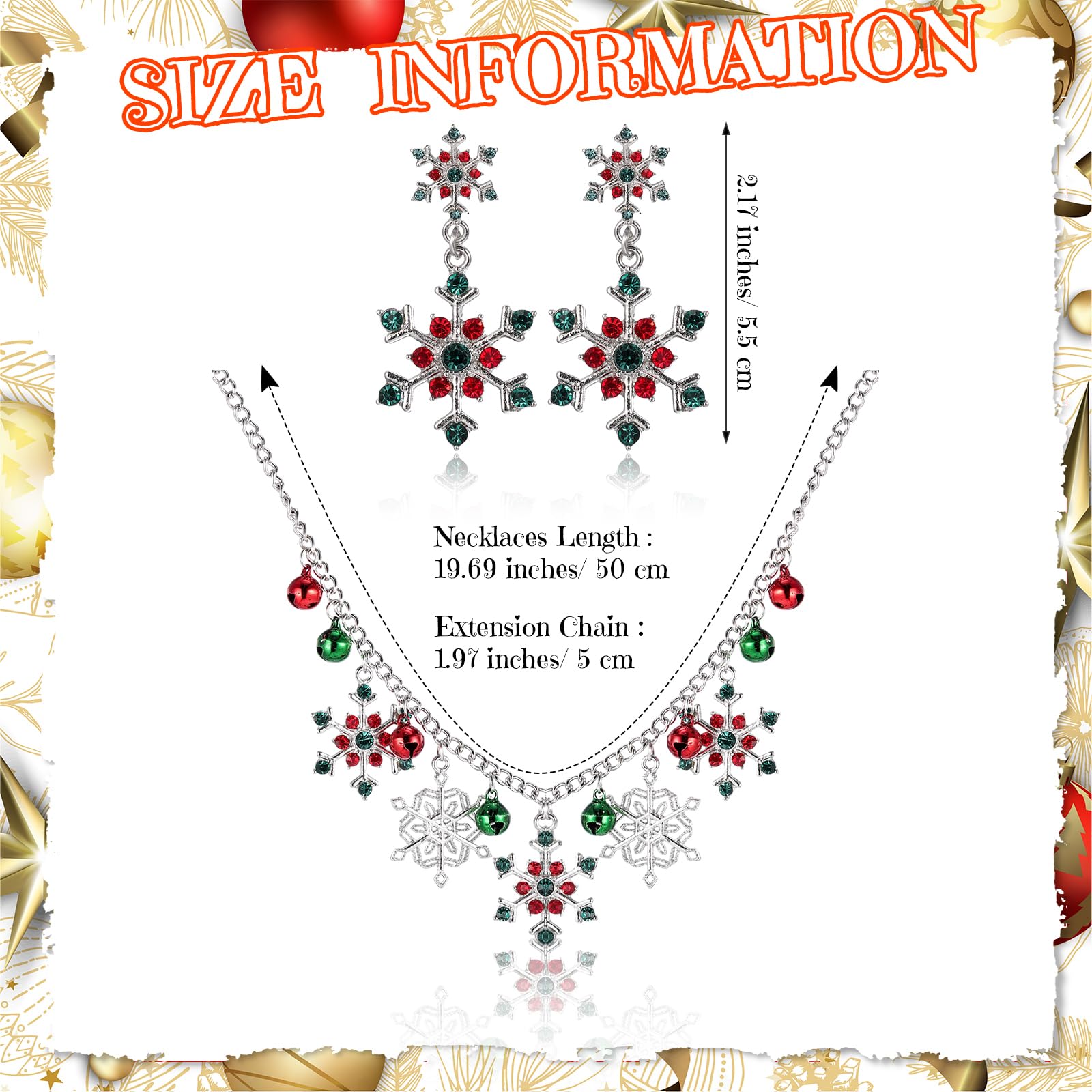 - Suitable Size for Most People: the Christmas necklaces for women are about 19.69 inches/ 50 cm in length with an extension chain of about 1.97 inches/ 5 cm, while the earrings are 2.17 inches/ 5.5 cm long; The size is suitable for most women, making it easy to wear and comfortable to move around in; The adjustable chain allows you to customize the length to fit your neck well; The earrings are also lightweight, so you won't feel weighed down by them