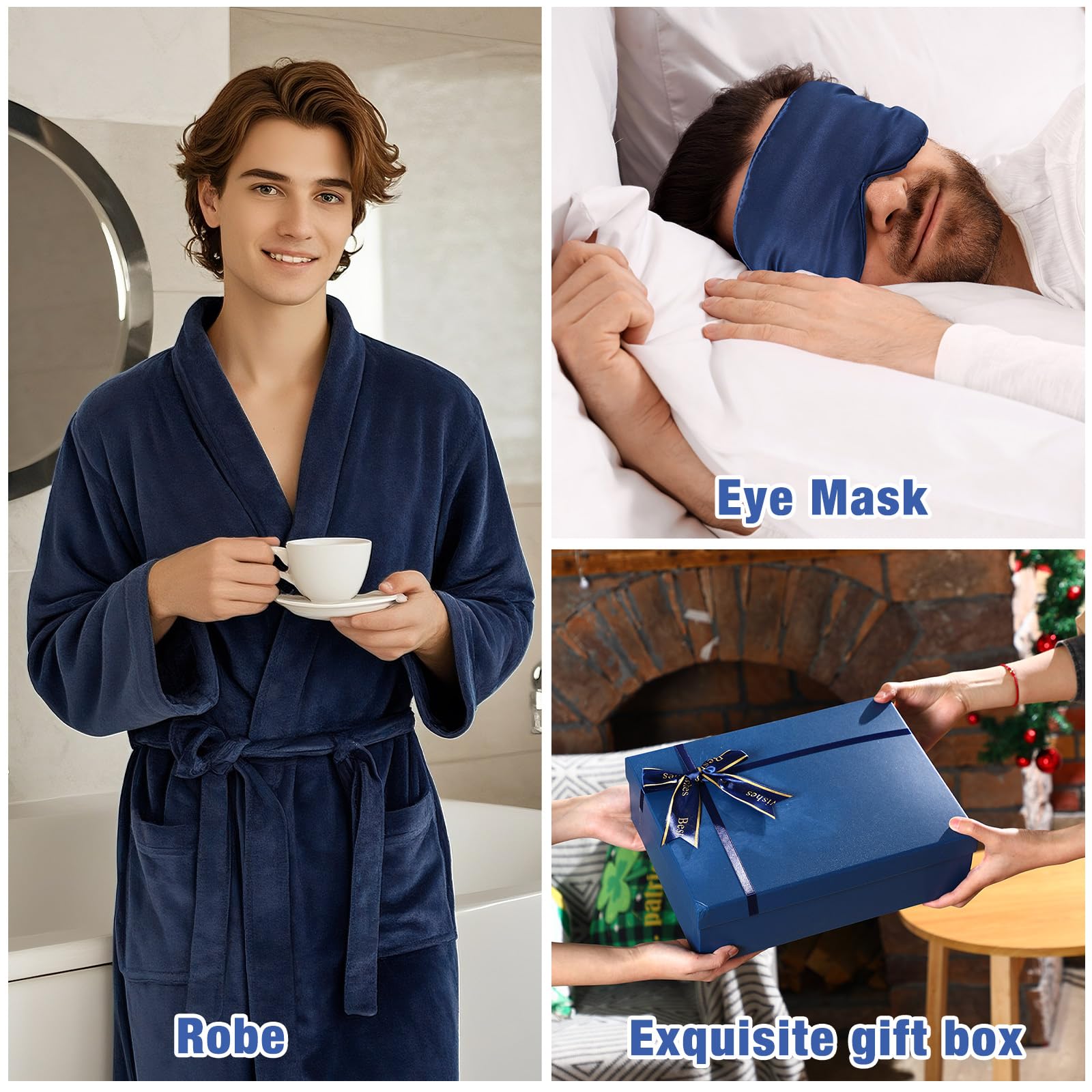 - Men's Gift Set: our 15 piece men's gift set includes a bathrobe, thermal cup, silk eye mask, socks, aromatherapy, men's bracelet, bracelet box, beard brush, toy ball, razor, comb, scissors, nail clipper set, greeting card and a navy gift box
